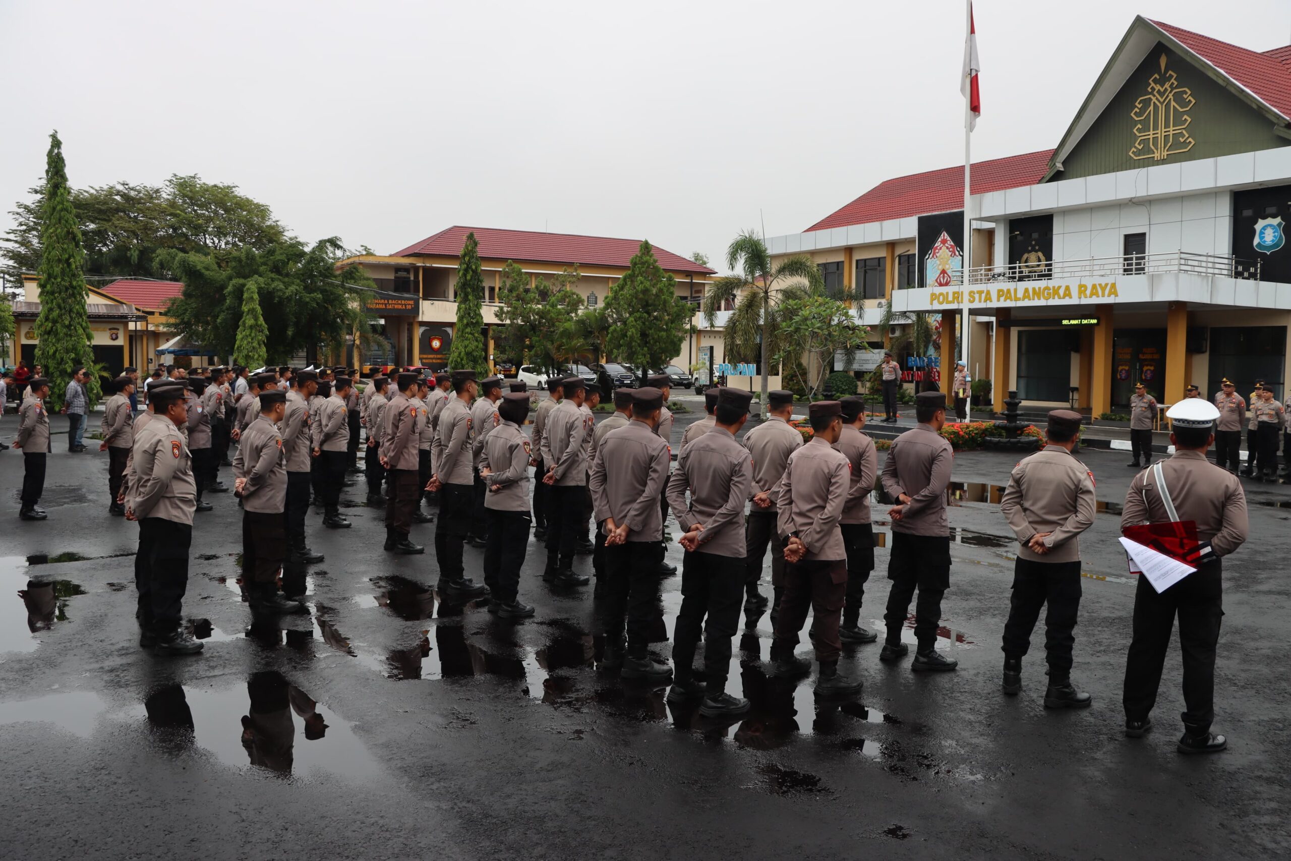 Apel pagi digelar pada lapangan Mapolresta Palangka Raya, Jalan Tjilik Riwut Km. 3,5, Kota Palangka Raya, Kalimantan Tengah, yang dihadiri oleh para Pejabat Utama (PJU), Perwira beserta personel Bintara dan PNS Polri, Selasa (18/2/2025) pagi.