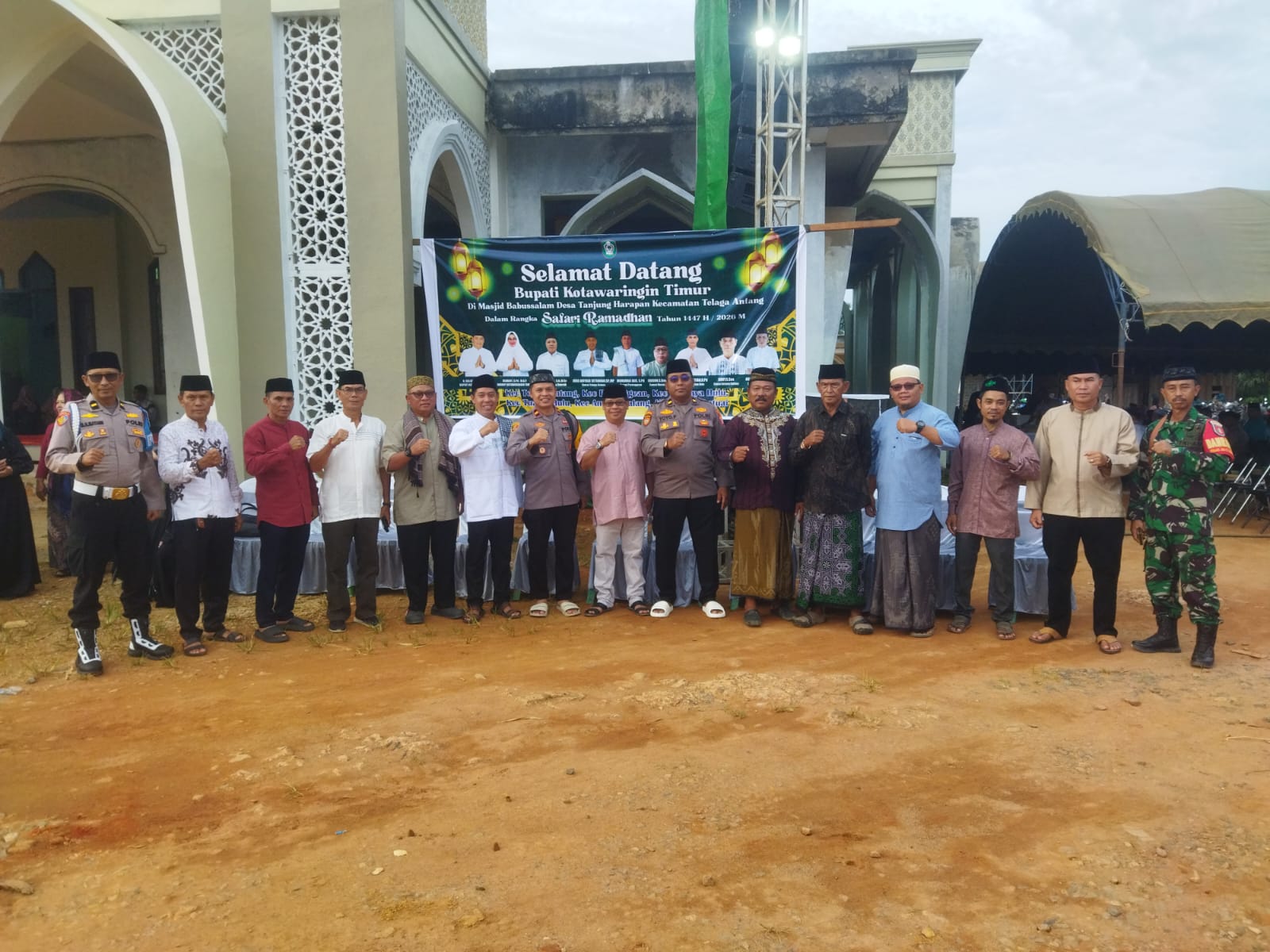 Kapolres Kotim. AKBP Resky Maulana Zulkarnain S.H.S.l.K.M.H, melalui Kapolsubsektor Telaga Antang Ipda Yoyo Prasetiyo. S.sos. menjelaskan Acara dipusatkan di halaman Masjid Babussalam, Desa Tanjung Harapan, dan dihadiri oleh berbagai unsur pemerintah daerah, Forkopimcam, TNI-Polri, tokoh agama, serta masyarakat setempat.