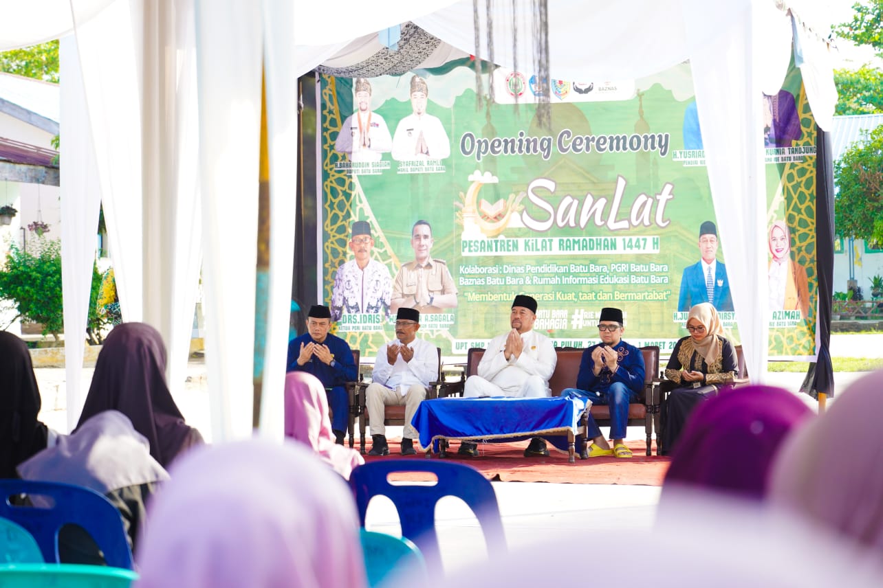 Siberpatroli.co.id || Batu Bara – Bupati Batu Bara H. Baharuddin Siagian, S.H., M.Si., secara resmi membuka kegiatan Pesantren Kilat Ramadan 1447 H yang diselenggarakan di UPTD SMP Negeri 1 Datuk Lima Puluh. Kegiatan ini merupakan kolaborasi antara Dinas Pendidikan Kabupaten Batu Bara, PGRI Kabupaten Batu Bara, BAZNAS Kabupaten Batu Bara, serta Rumah Informasi dan Edukasi (RIE) Batu Bara, Jumat (27/2/2026).