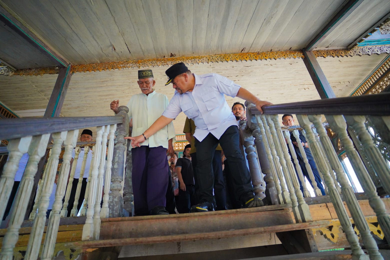 Setibanya di lokasi, rombongan disambut oleh Jimin, salah satu keturunan Kedatukan Istana Niat Lima Laras, yang memberikan penjelasan mengenai sejarah serta nilai-nilai budaya yang terkandung dalam bangunan bersejarah tersebut.