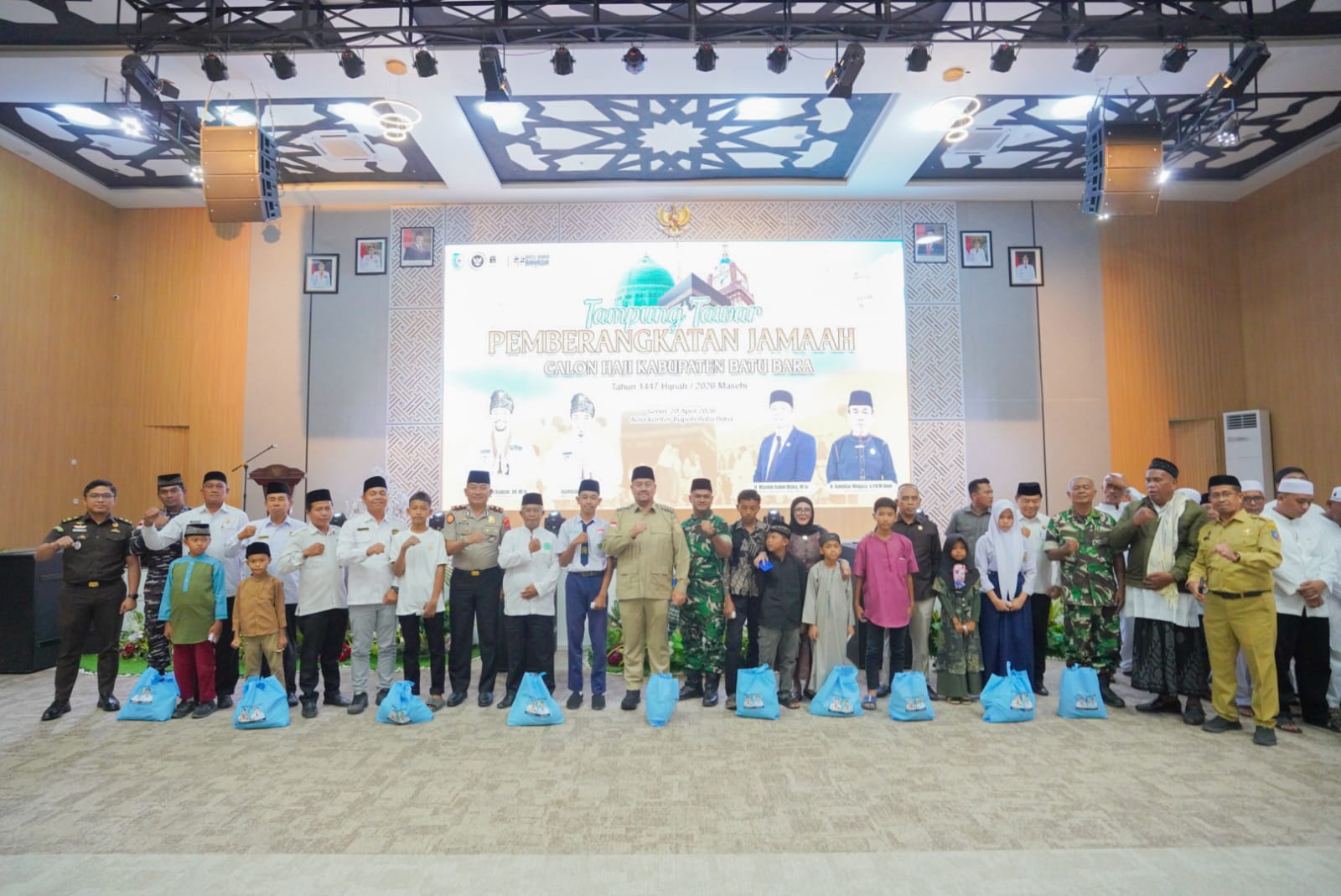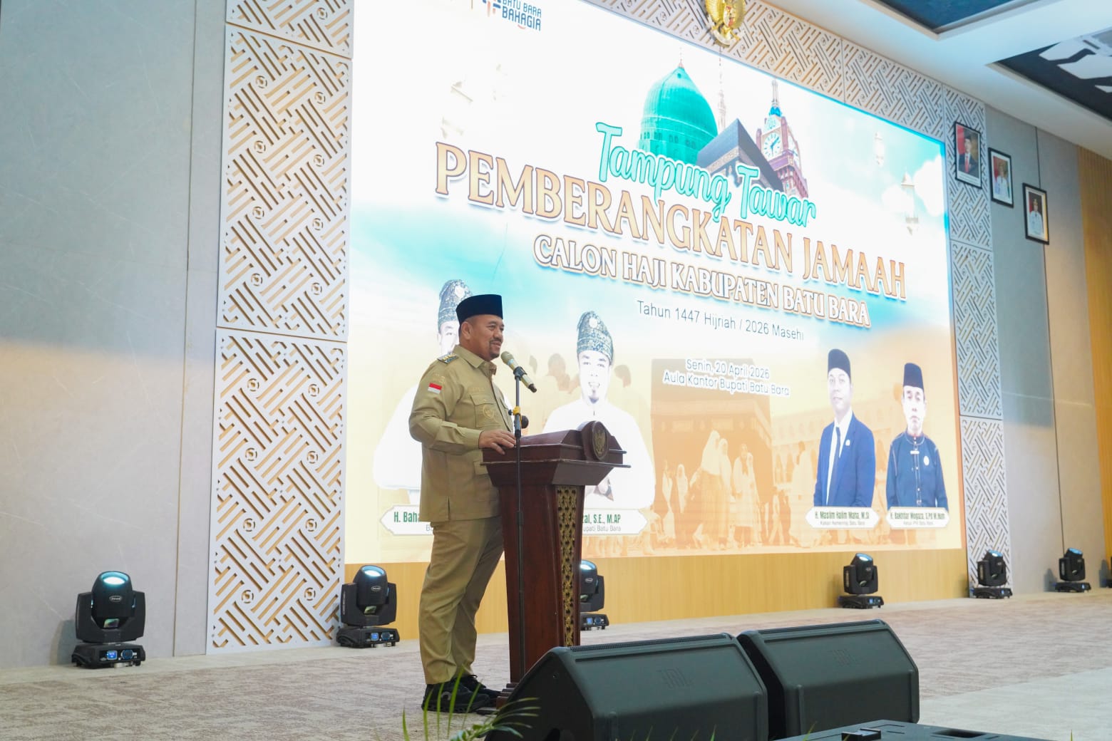 Siberpatroli.co.id || Batu Bara – Bupati Batu Bara H. Baharuddin Siagian, S.H., M.Si., menepung tawari jemaah calon haji Kabupaten Batu Bara Tahun 1447 Hijriah/2026 Masehi yang digelar di Aula Kantor Bupati Batu Bara, Kecamatan Lima Puluh, Senin (20/4/2026).