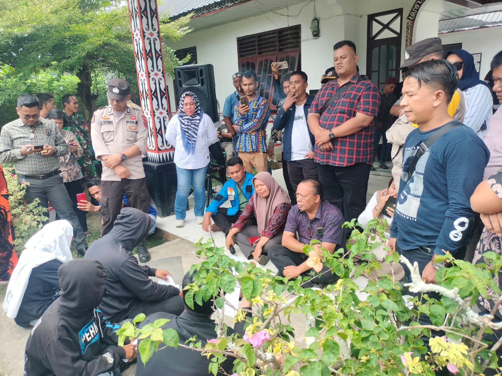 Siberpatroli.co.id || SIMALUNGUN – Camat Bandar Masilam Ida Royani Damanik.S.Pd,.M.Ap didampingi Kapolsek Perdagangan AKP Ibrahim Sopi.SH dan Danramil 06/Bandar Kapten Inft R Pasaribu, Sekcam Bandar Masilam Robert Kenedi Silalahi , temui 5 orang yang mengaku dari GERMA SURA terkait menyampaikan orasi di depan Kantor Camat Bandar Masilam, Kamis 24/9/2025 sekira pukul 12.45 Wib.