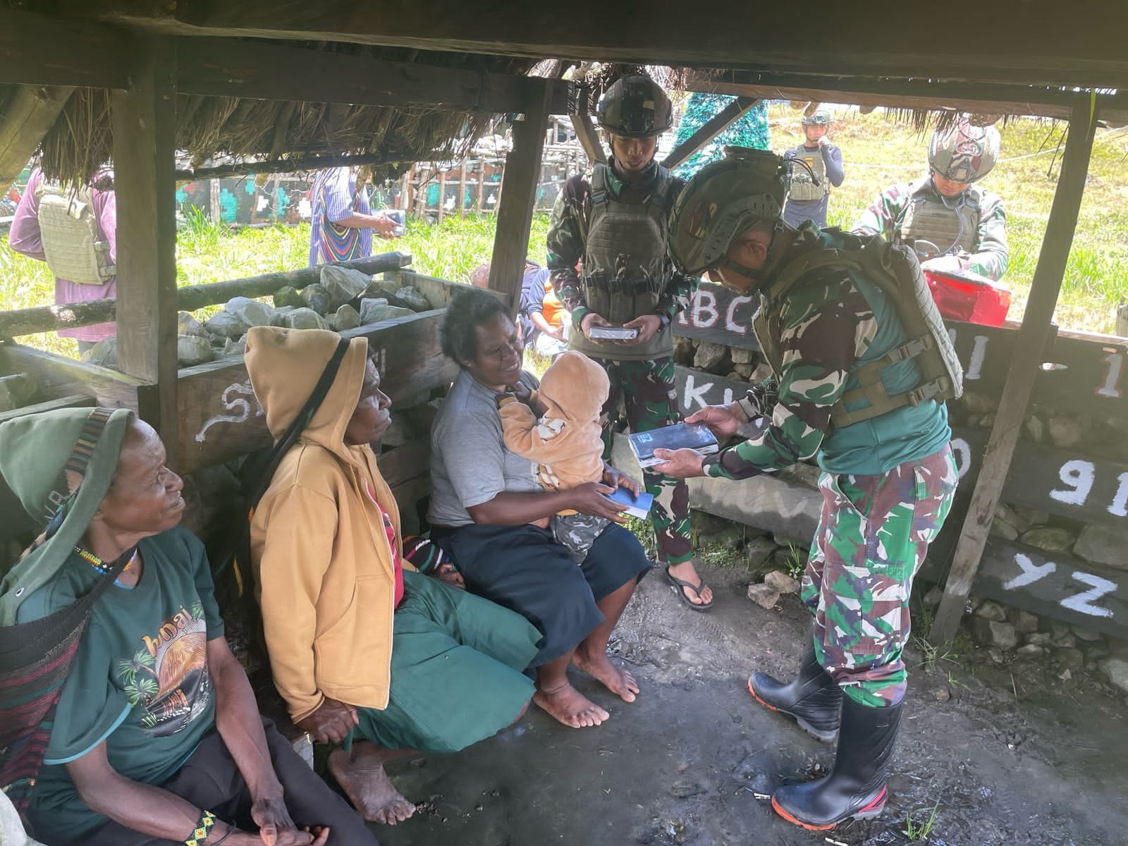Siberpatroli.co.id // Sinak – Satgas Pamtas RI-PNG Mobile Yonif 700/WYC, dipimpin langsung Danpos Sinak Bandara Lettu Inf Karel melaksanakan kegiatan pemberian sarana penggalangan (sargal) berupa Al-Kitab kepada masyarakat kampung Gigobak distrik sinak Jumat 14/03/2025)