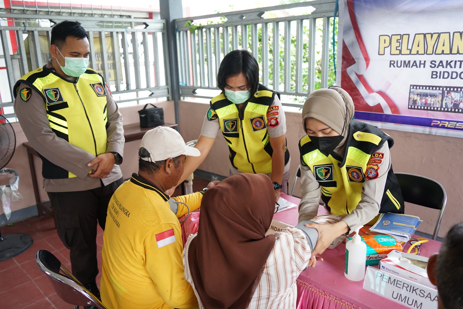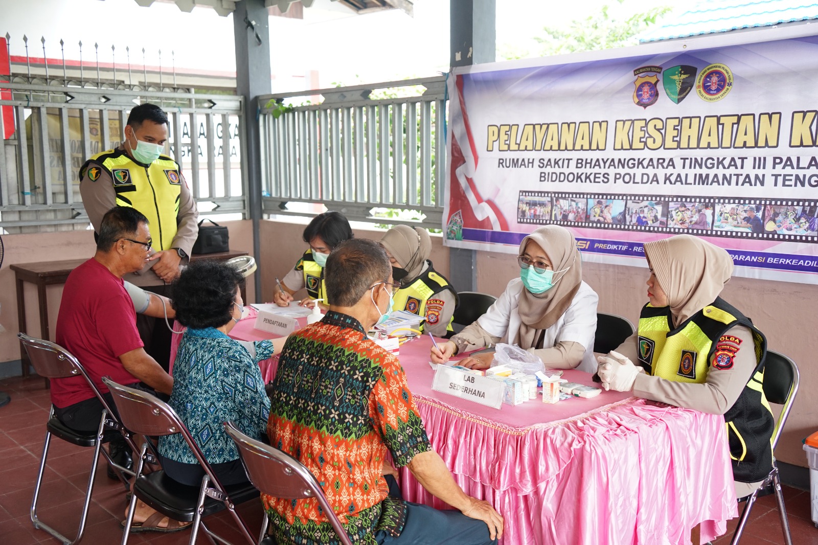 Terlihat masyarakat turut memanfaat dengan baik kegiatan pelayanan kesehatan yang diberikan oleh Rumkit Bhayangkara Polda Kalteng.