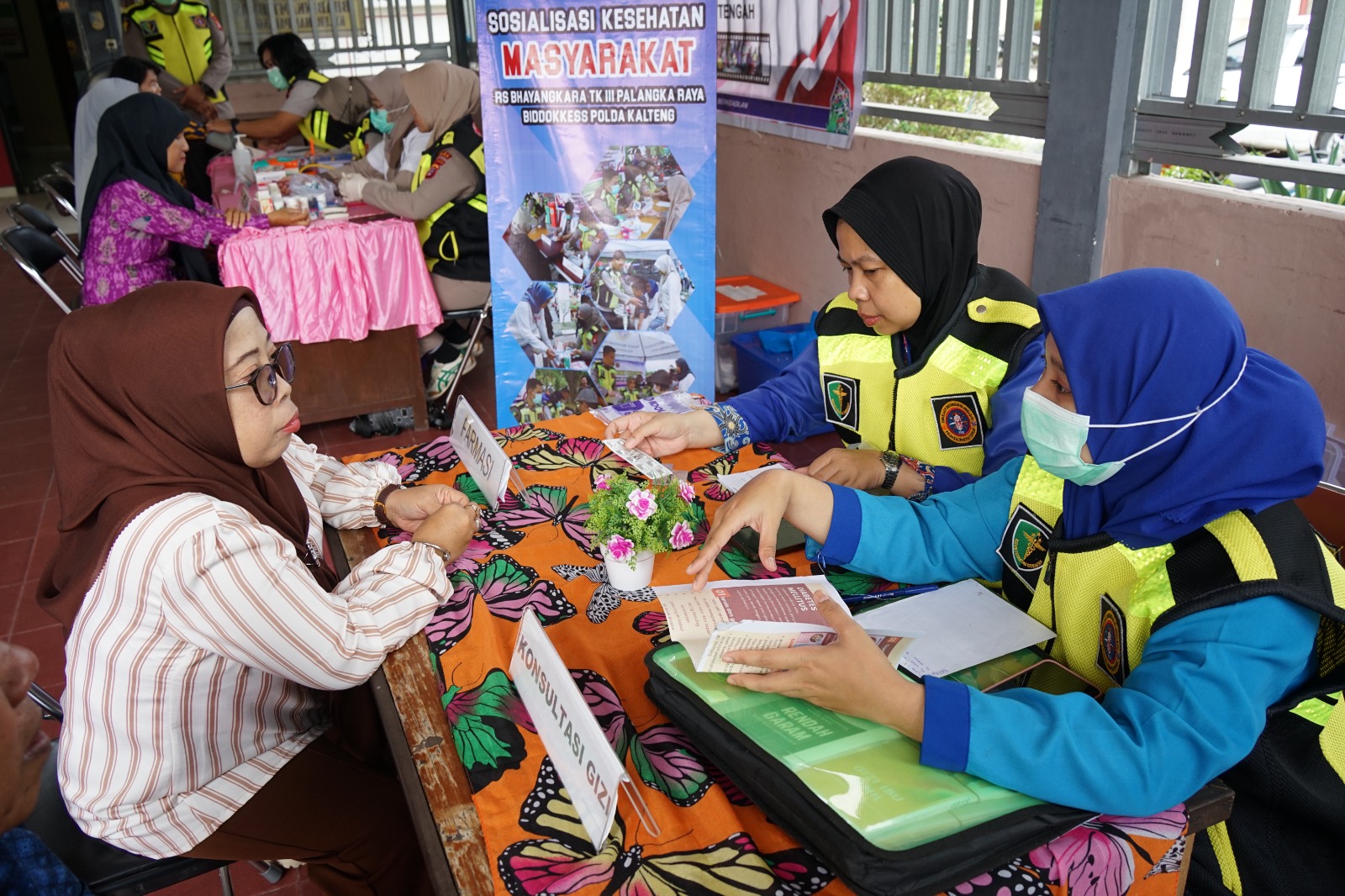 Selain mengadakan pemeriksaan kesehatan, Rumkit Bhayangkara Polda Kalteng juga membagikan vitamin dan memberikan penyuluhan tentang kesehatan.