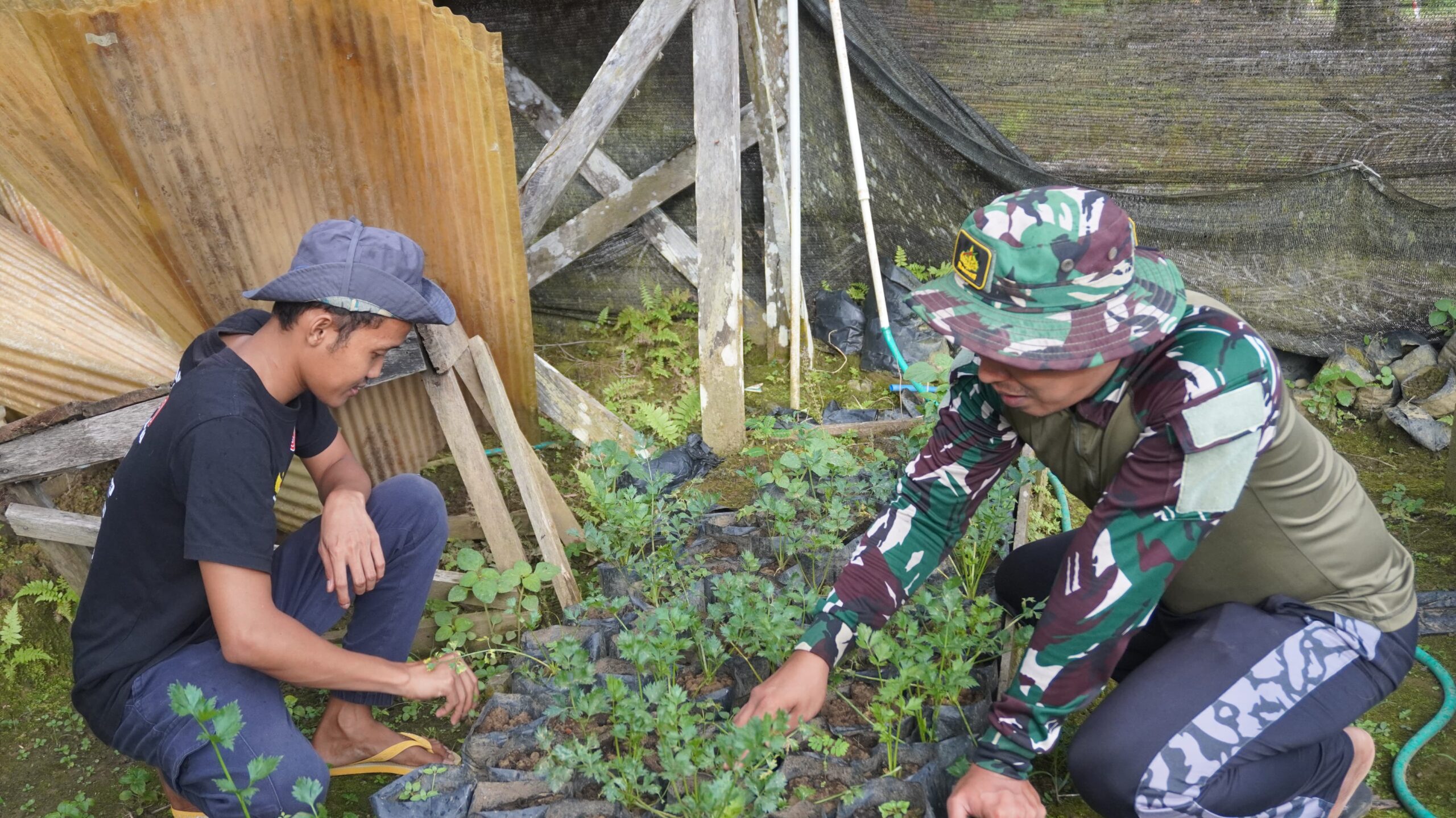 “Desa Tri Buana mempunyai lahan perkebunan yang sangat luas dan subur, sehingga selain tanaman sawit, juga ada tanaman sayuran yang ditanam Bapak Rojani, ” kata Serka Doni.