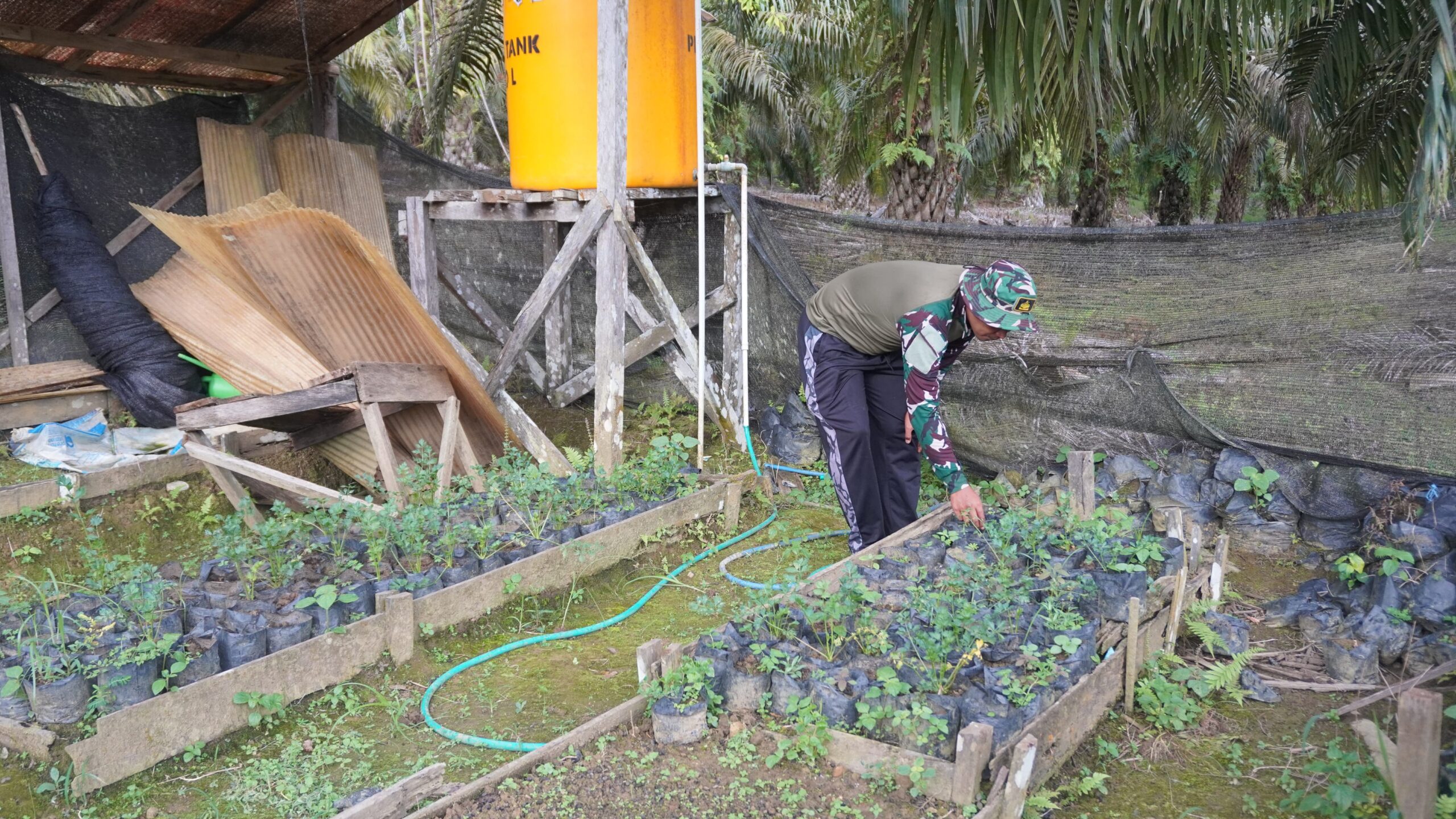 “Desa Tri Buana mempunyai lahan perkebunan yang sangat luas dan subur, sehingga selain tanaman sawit, juga ada tanaman sayuran yang ditanam Bapak Rojani, ” kata Serka Doni.