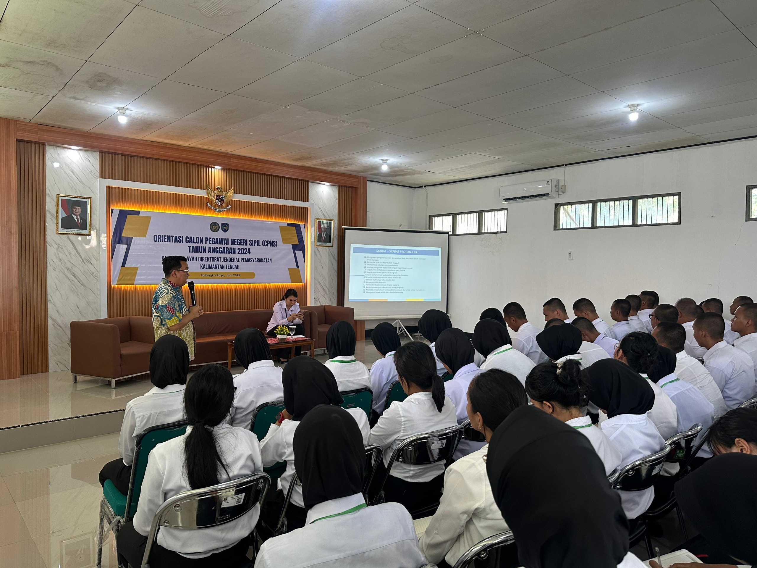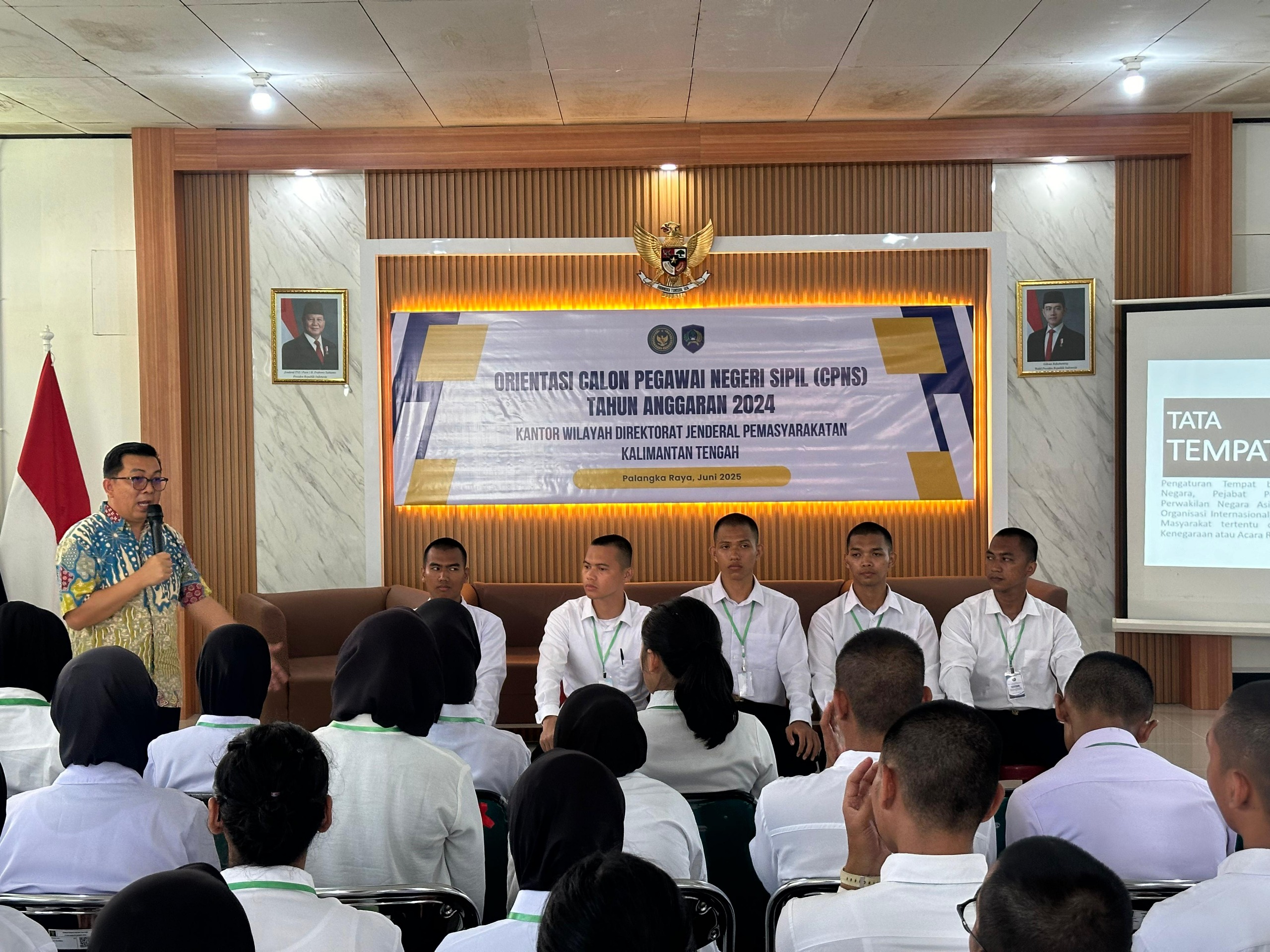 Siberpatroli.co.id // Palangka Raya — Calon Pegawai Negeri Sipil (CPNS) formasi Tahun Anggaran 2024 di lingkungan Kantor Wilayah (Kanwil) Direktorat Jenderal Pemasyarkatan (Ditjenpas) Kalimantan Tengah menerima pemaparan dua materi penting yaitu “Penanganan Bencana Alam bagi Warga Binaan Pemasyarakatan (WBP)” oleh Badan Nasional Pencarian dan Pertolongan (Basarnas) Provinsi Kalimantan Tengah serta materi “Keprotokolan yang disampaikan oleh Kepala Bagian (Kabag) Protokol Pemerintah Provinsi (Pemprov) Kalimantan Tengah, Selasa (10/6/2025).