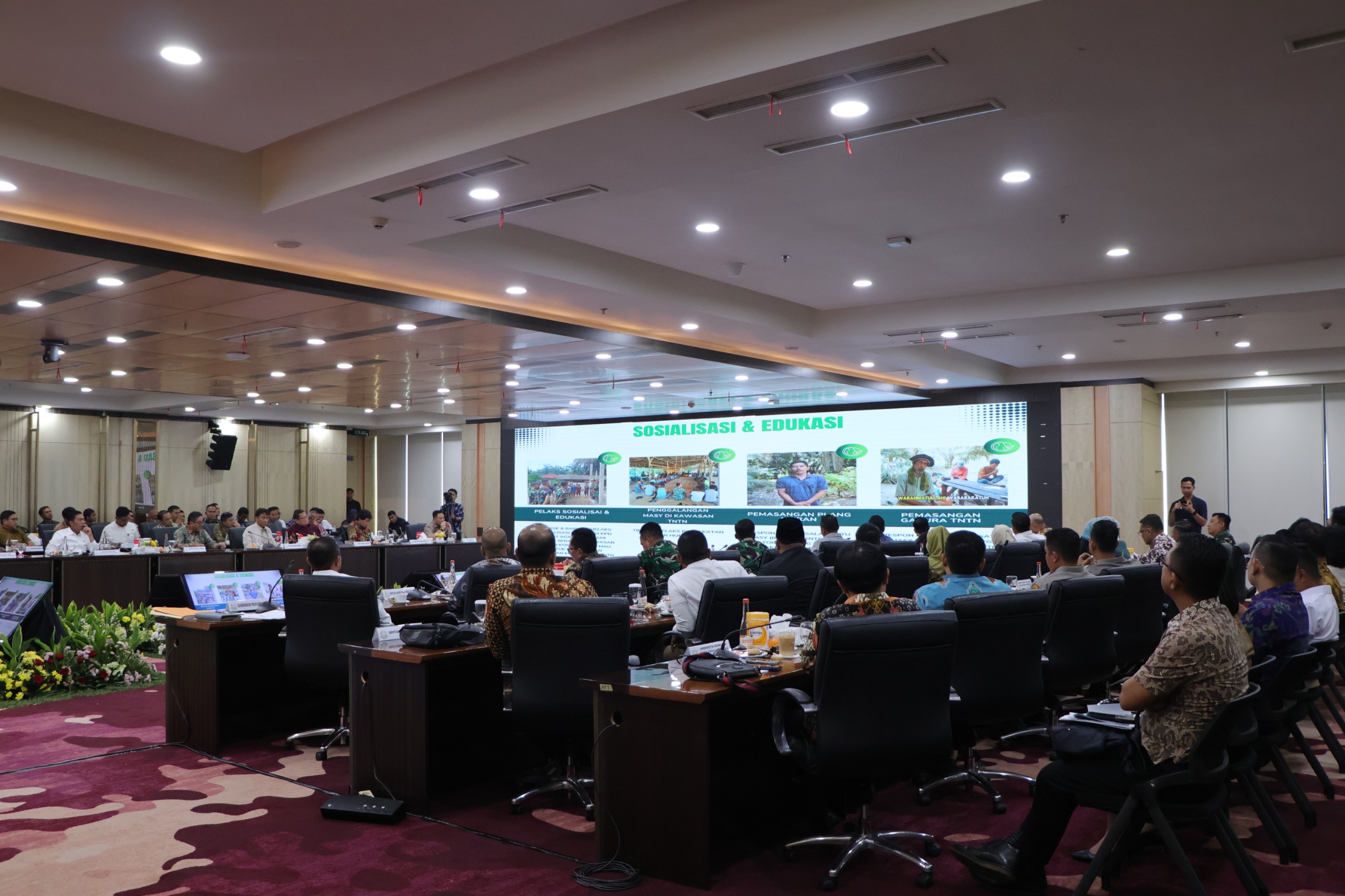 Adapun dalam rapat ini menyoroti berbagai permasalahan kompleks yang dihadapi dalam upaya penertiban kawasan hutan, dengan harapan keberhasilan di TNTN dapat menjadi percontohan nasional.