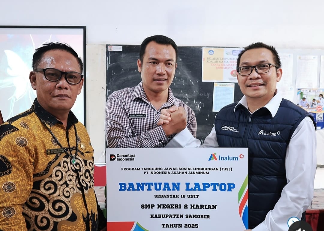 Siberpatroli.co.id || BATU BARA – Indonesia Asahan Aluminium (Inalum) berkomitmen terhadap kemajuan pendidikan nasional. Melalui program Tanggung Jawab Sosial dan Lingkungan (TJSL), perusahaan menyalurkan bantuan 16 unit laptop kepada SMP Negeri 2 Harian, Kabupaten Samosir, Sumatera Utara, Selasa (15/07/2025).