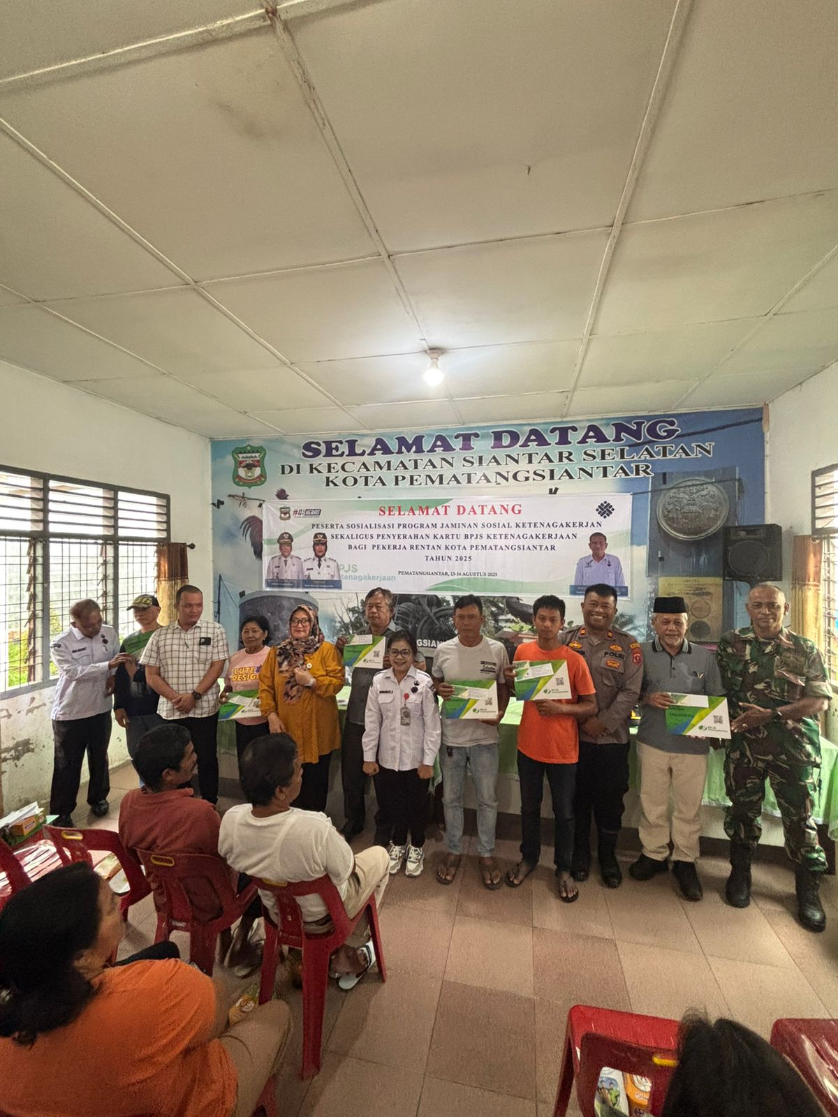 siberpatroli.co.id|| PEMATANG SIANTAR- Kapolsek Siantar Selatan IPTU Priston Simbolon menghadiri Sosialisasi Peserta program jaminan sosial ketenagakerjaan sekaligus Penyerahan kartu BPJS Ketenagakerjaan bagi pekerja rentan Kota Pematangsiantar tahun 2025.