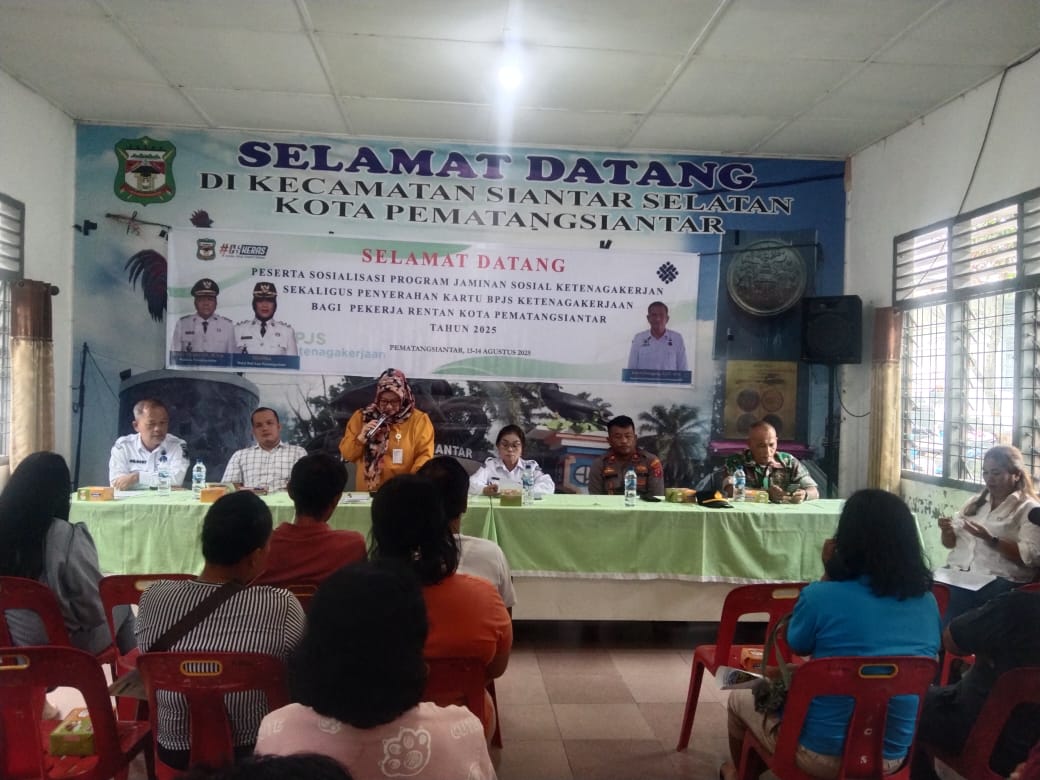 siberpatroli.co.id|| PEMATANG SIANTAR- Kapolsek Siantar Selatan IPTU Priston Simbolon menghadiri Sosialisasi Peserta program jaminan sosial ketenagakerjaan sekaligus Penyerahan kartu BPJS Ketenagakerjaan bagi pekerja rentan Kota Pematangsiantar tahun 2025.