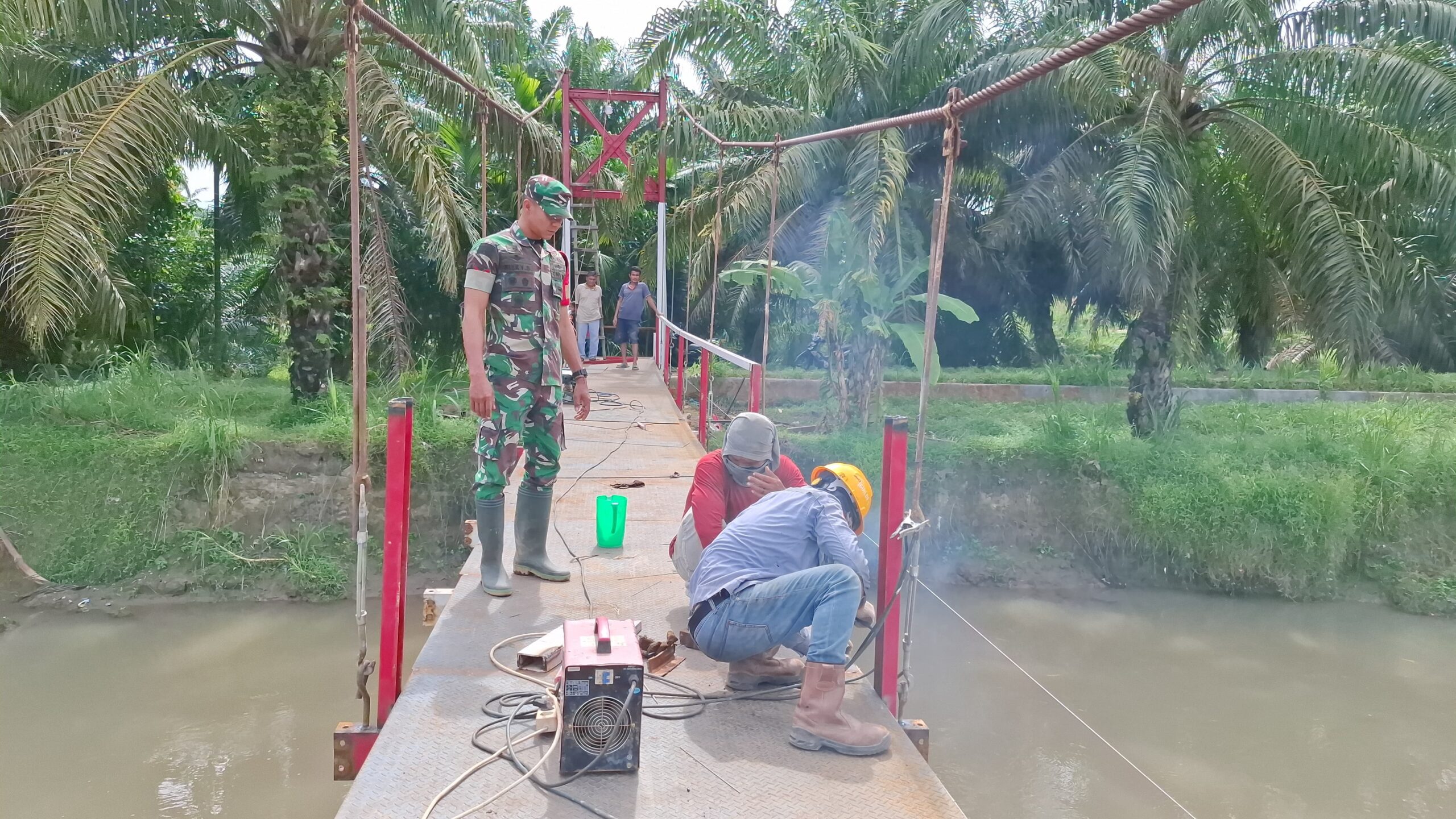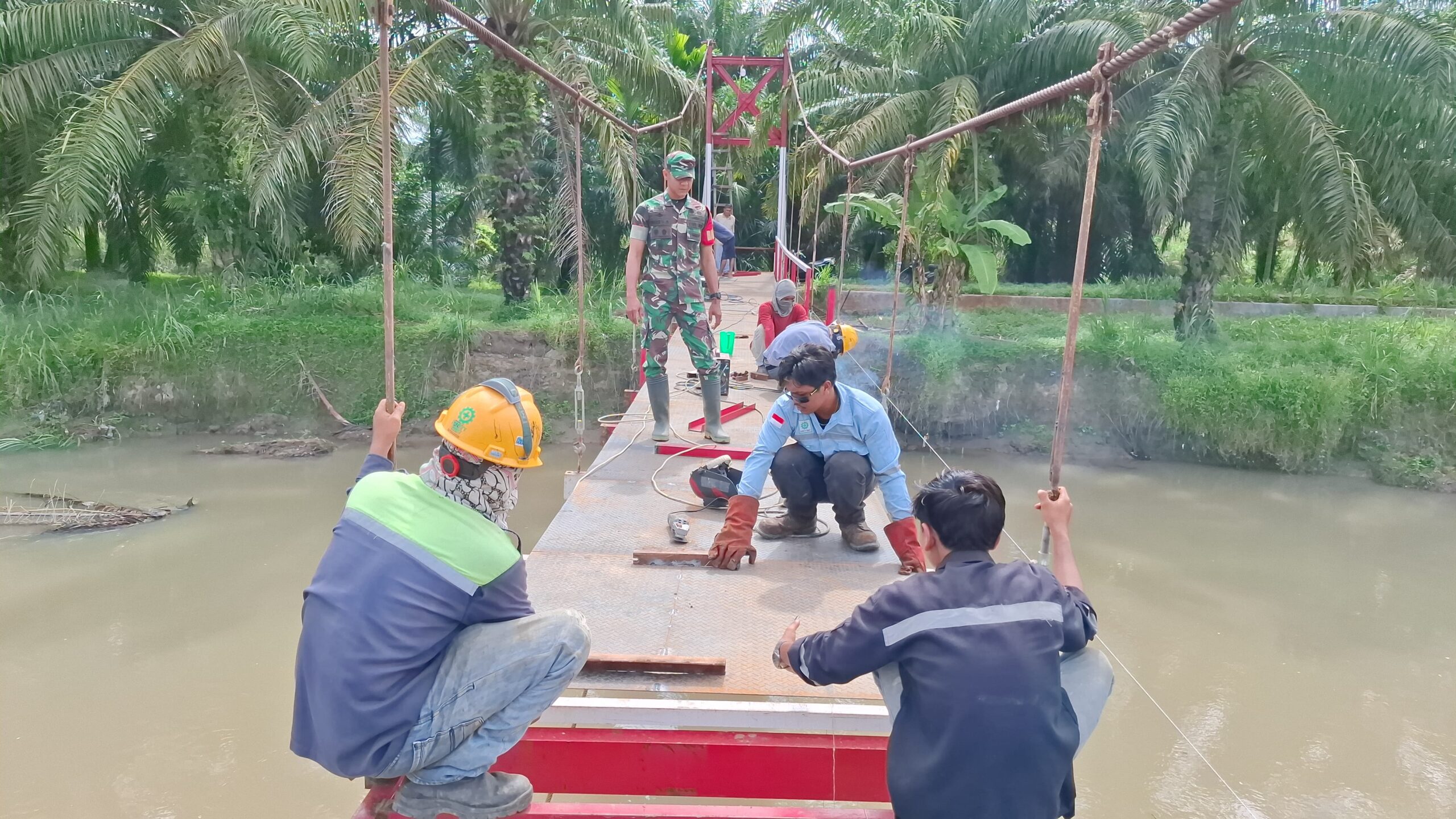 Sebagaimana telah diberitakan sebelumnya bahwa banjir yang terjasi dibulan November 2025 yang lalu berakibat banyaknya terjadi kerusakan inprasetruktur desa terkhusus jembatan gantung Sungai Bahapal Desa Kandangan, menyikapi hal tersebut Dandim 02/08 AS (ASAHAN) Letkol Inf Edy Syahputra.SH,.M.I.P beserta jajaran telah berkunjung dan melihat langsung kerusakan jembatan gantung tersebut, dan tidak berapa lama jembatan gantung tersebut langsung direkonstruksi yang saat ini sedang dikerjakan.