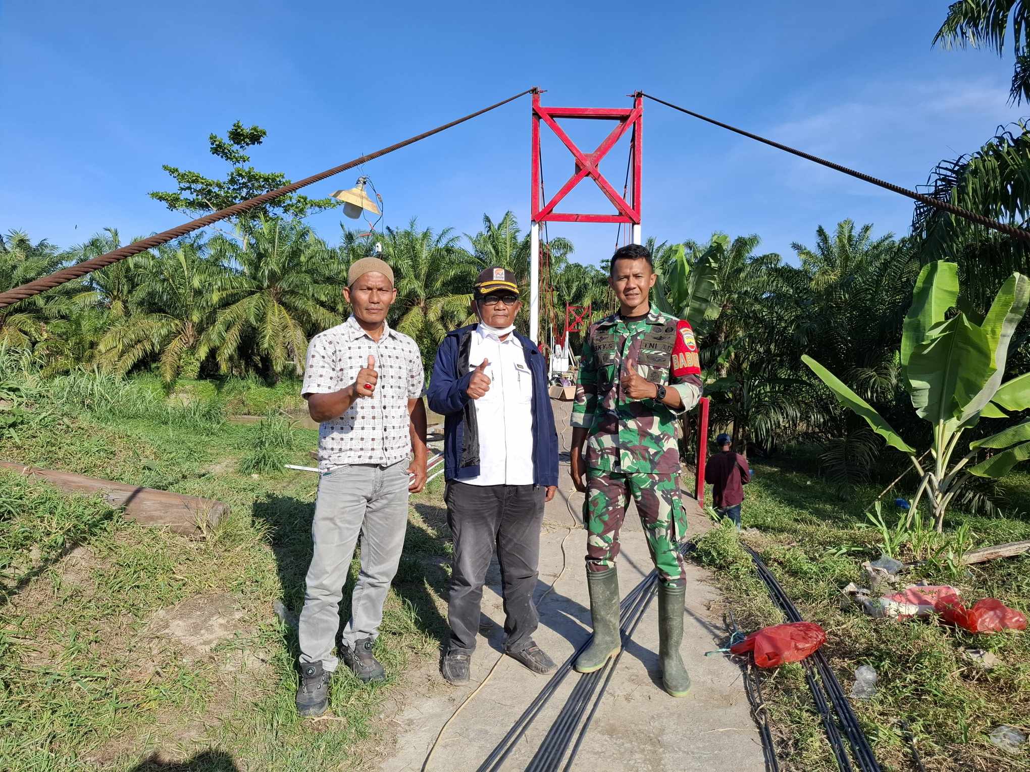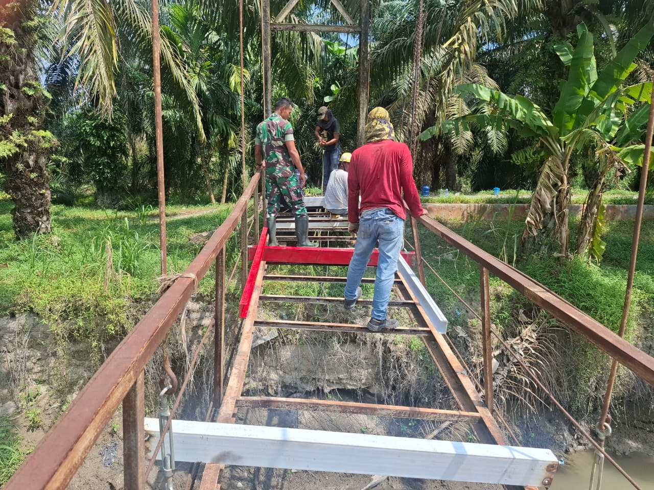 Hal ini disampaikak oleh Babinsa Koramil 02/AP (Air Putih) Desa Kandangan Kopda Ridzky Septian dilokasi pengerjaan rekonstruksi Jembatan Gantung tersebut, didampingi oleh Kepala Desa Kandangan Kecamatan Laut Tador Suratmin, Jumat 20/2/2026 sekira pukul 15.00 Wib.