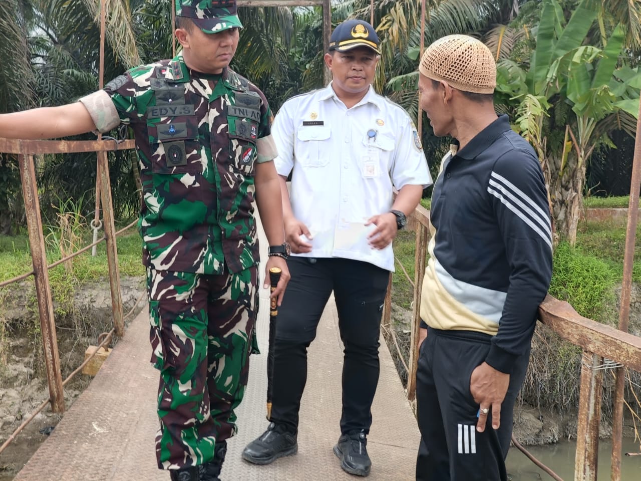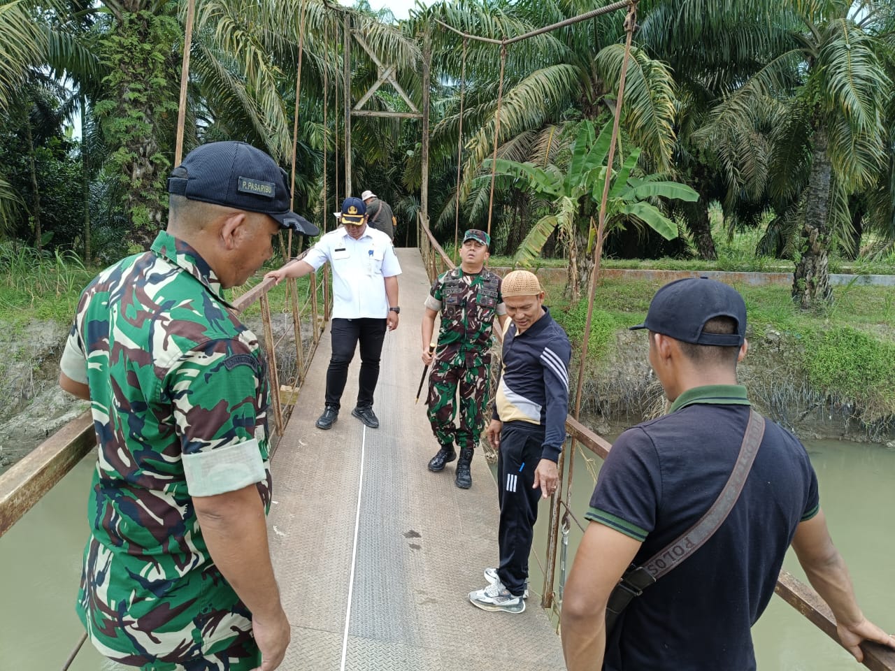 Kunjungan Dandim 0208/ASAHAN Letkol Inft Edy Syahputra.SH,.S.IP didampingi Danramil Kapten Inf Parma Pasaribu.S.AN didampingi Babinsa Praka Risky Septian juga personil Koramil 02/AIR PUTIH dan Camat Laut Tador Swardi.S.Pd, Kepala Desa Kandangan Suratmin beserta jajaran Pemerintah Desa Kandangan meninjau langsung ke lokasi Jembatan Gantung yang kondisinya saat ini benar-benar membutuhkan perbaikan demi kelancaran aktifitas warga Desa Kandangan juga masyarakat Desa tetangga.