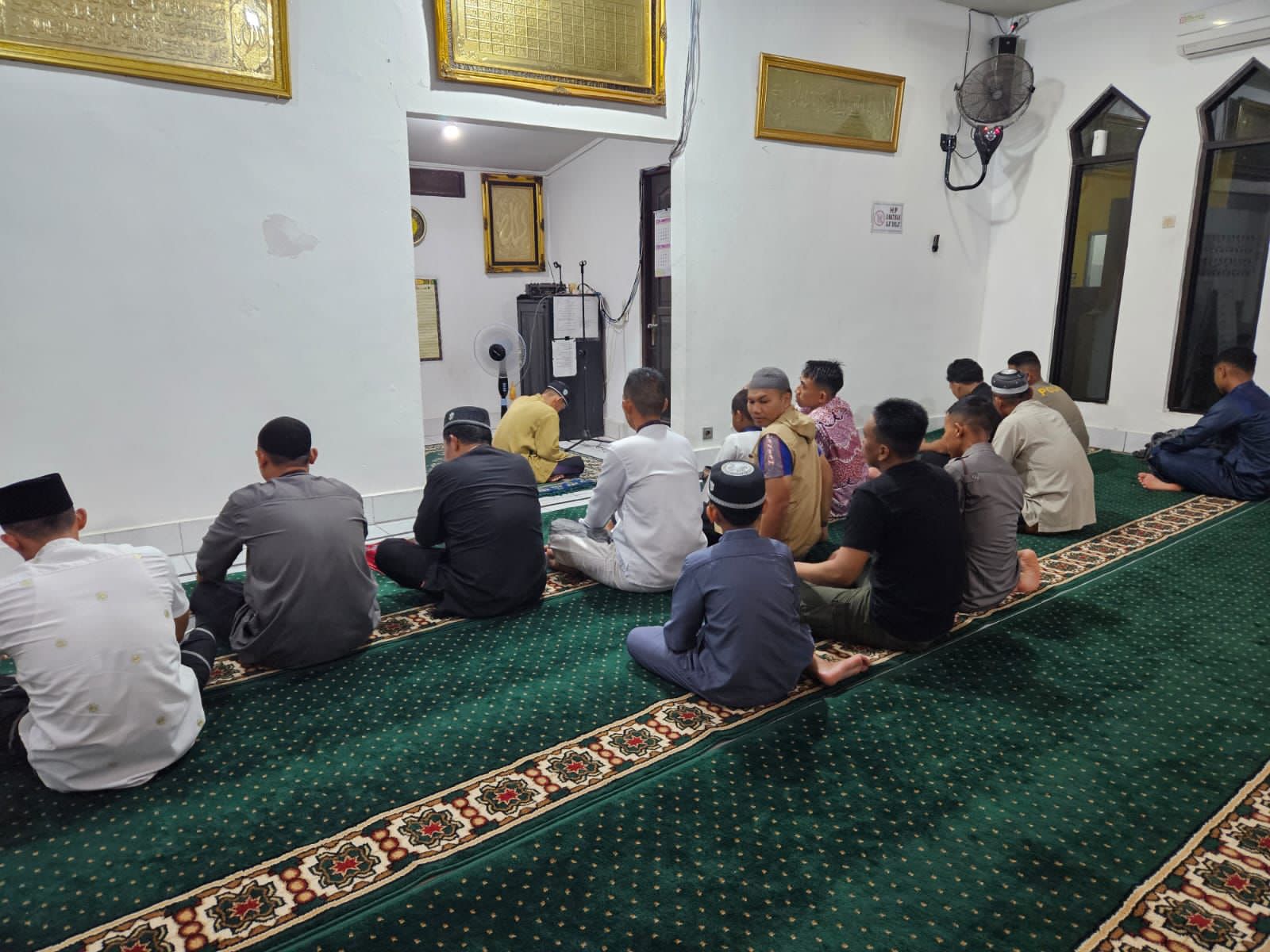 Kegiatan ibadah ini berlangsung khusyuk dengan diikuti oleh personel kepolisian serta jemaah lainnya.