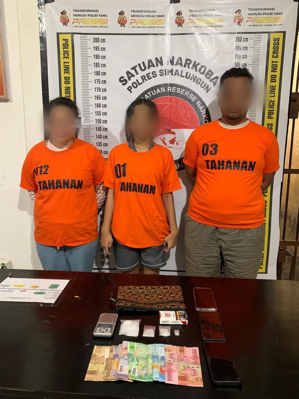 Tim yang dipimpin oleh AKP Henry S Sirait, S.I.P., S.H., M.H., berhasil mengamankan dua tersangka pertama, yakni Dewi Sartika Arlia (39) dan Roni Agape Sitanggang (38) di dalam mobil Toyota Calya silver BK 1077 ABL. “Dari penggeledahan terhadap kedua tersangka, petugas menemukan sejumlah barang bukti narkotika jenis sabu,” tambah AKP Verry.