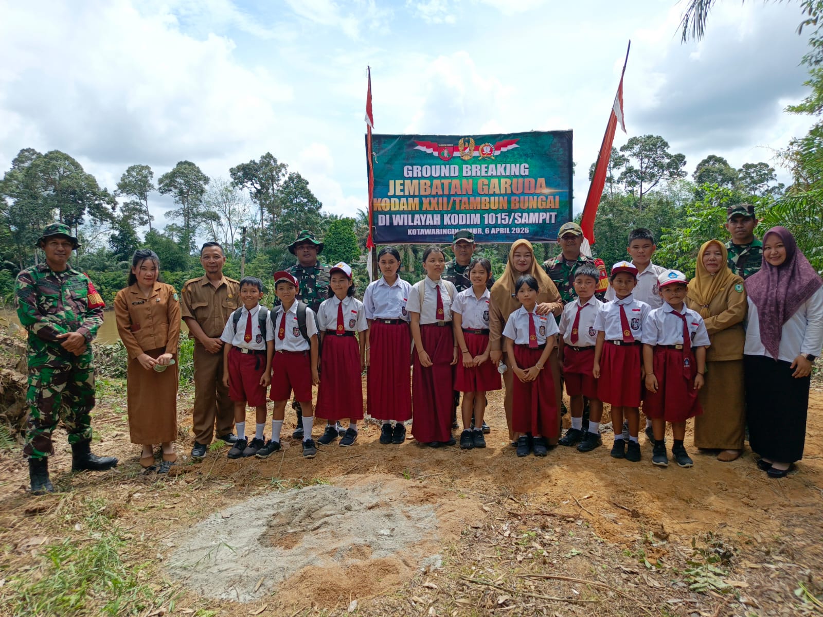 Kotawaringin Timur // Siberpatroli.co.id – Pembangunan 2 Jembatan Garuda di wilayah Kodim 1015/Sampit secara resmi di mulai, pembangunan tersebut ditandai dengan prosesi ground breaking yang digelar oleh Komando Distrik Militer (Kodim) 1015/Sampit.