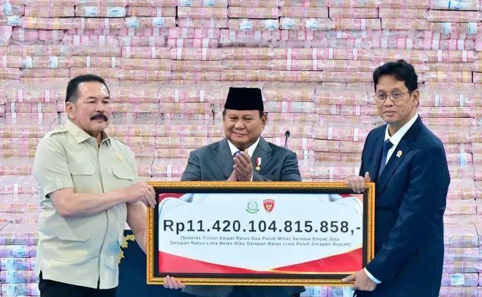 JAKARTA // Siberpatroli.co.id – Tren positif penyelamatan keuangan negara terus berlanjut. Presiden RI Prabowo Subianto, didampingi Panglima TNI Jenderal TNI Agus Subiyanto, menyaksikan langsung penyerahan denda administratif dan aset negara Tahap VI senilai Rp 11,42 triliun di Kompleks Kejaksaan Agung RI, Jakarta, Jumat (10/04/2026).