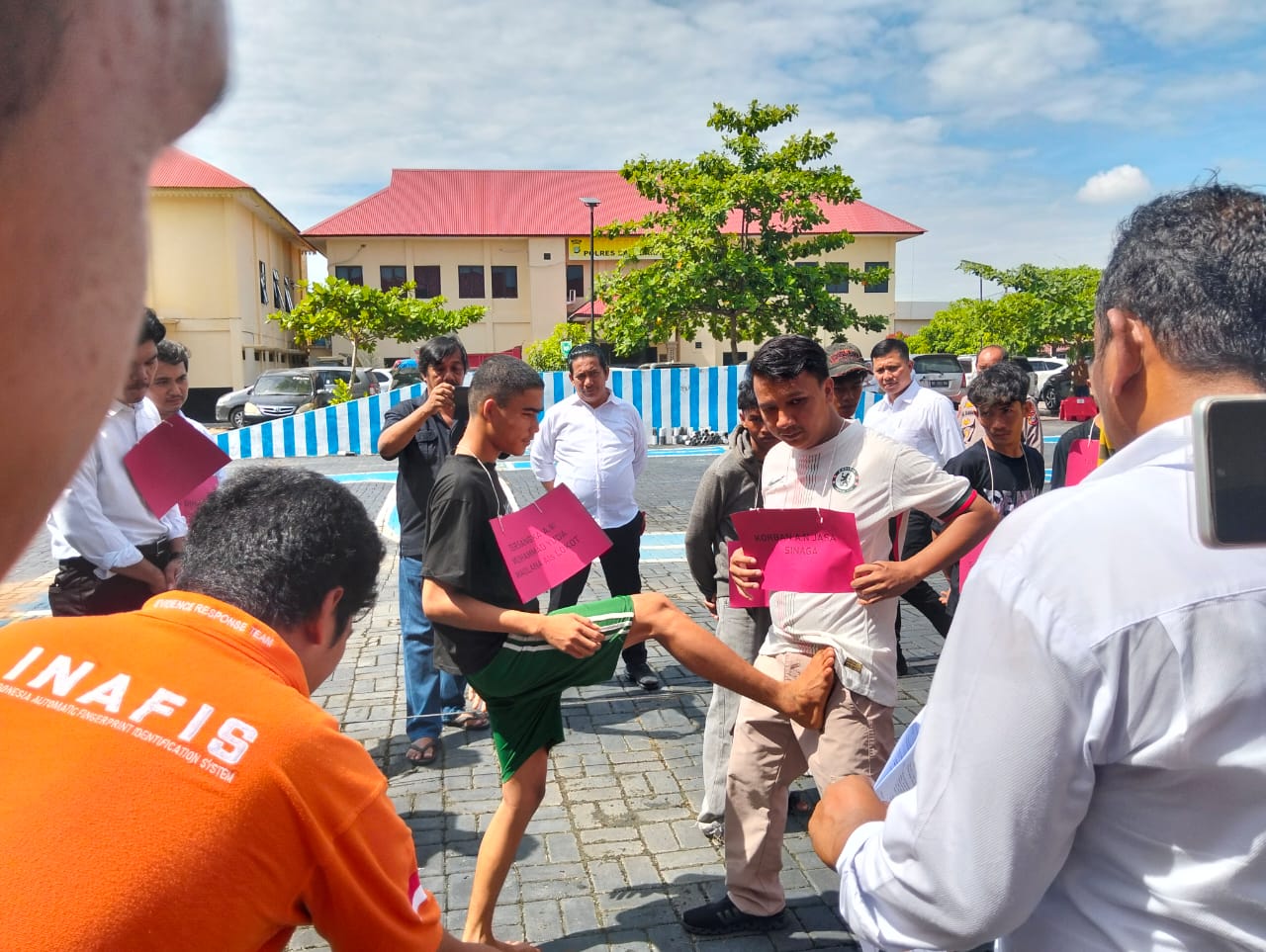 Siberpatroli.co.id || BATU BARA — Polres Batu Bara gelar rekonstruksi penganiayaan dan pembunuhan terhadap korban Jasa Sinaga dengan 6 tersangka di halaman tengah Mapolres Batu Bara, Senin (1/09/2025).