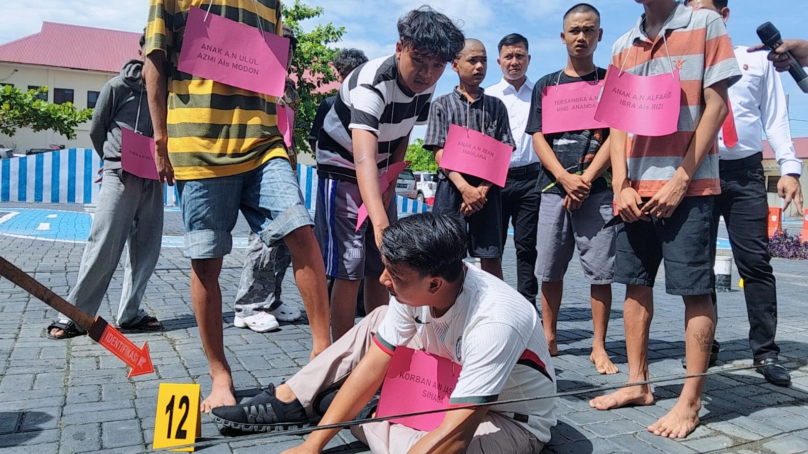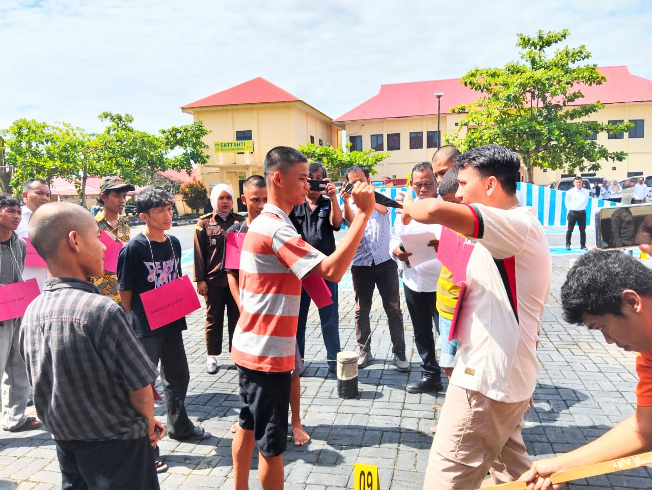 Rekonstruksi diawali saat enam tersangka masing-masing inisial