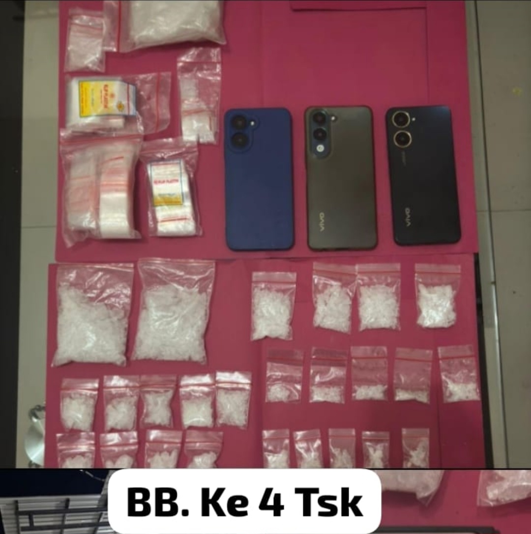 Dari hasil penangkapan tersebut, petugas menemukan barang bukti berupa satu plastik klip transparan berisi narkotika jenis sabu dengan berat bruto 9,97 gram serta satu unit handphone.