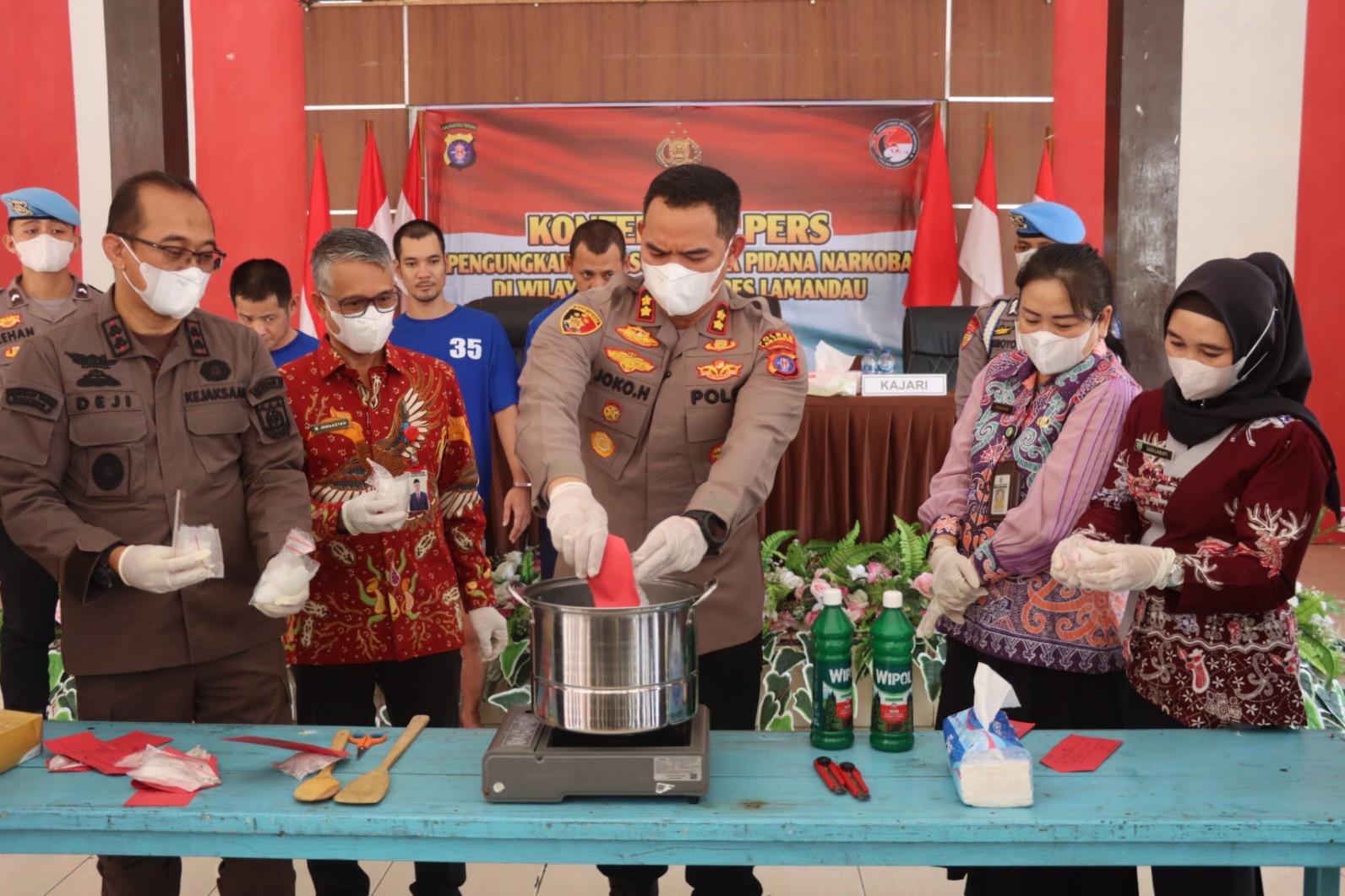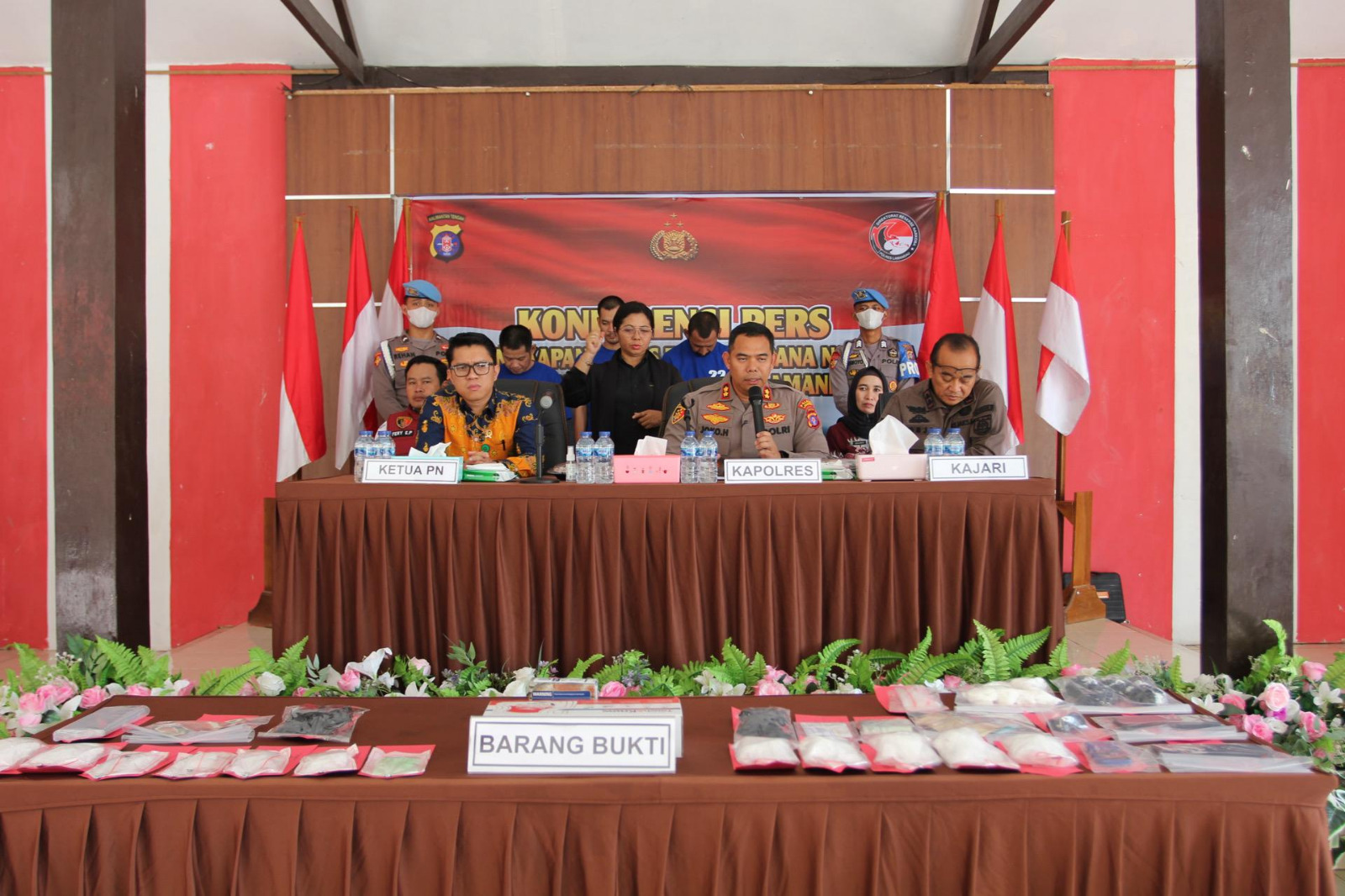 Dalam press release tersebut, Kapolres Lamandau menyampaikan keberhasilan jajarannya dalam mengungkap kasus peredaran gelap narkotika, termasuk pengungkapan sebanyak 2 (dua) Perkara dengan barang bukti berupa Narkotika jenis sabu sekaligus Pemusnahan barang bukti dengan berat total sebanyak 785,79 gram dan Pil Ekstasi sebanyak 17 (tujuh belas) butir.