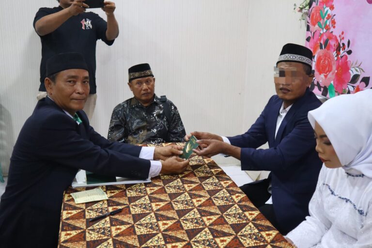 Foto : Polres Pematangsiantar memfasilitasi tahanan kasus narkoba bernama Surya melangsungkan akad nikah dengan mempelai wanita Sinta bertempat di Ruang Gelar Sat Narkoba Mako Polres Pematangsiantar, pada Senin 28 April 2025 pagi pukul : 09.00 WIB