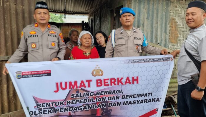 siberpatroli.co.id || SIMALUNGUN –Polsek Perdagangan kembali menunjukkan kepeduliannya terhadap masyarakat kurang mampu dengan menggelar kegiatan Jumat Barokah pada hari Jumat, 3 Januari 2024. Dipimpin langsung oleh Kapolsek Perdagangan, AKP. IBRAHIM SOPI, SH, kegiatan ini melibatkan Kanit Propam Aiptu M.Sinambela dan Kepala Lingkungan Perdagangan III, Rudi. Mereka mengunjungi empat rumah warga kurang mampu di wilayah hukum Polsek Perdagangan, memberikan bantuan paket sembako, dan berbincang-bincang dengan warga penerima bantuan.
