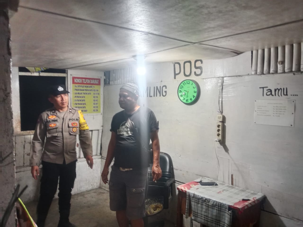 siberpatroli.co.id|| PEMATANG SIANTAR-Polsek Siantar Utara Polres Pematangsiantar melalui piket Bhabinkamtibmas Aipda Yunus sembiring dan Aipda H.E Pane melaksanakan sambang ke Pos siskamling Jalan Tanah Jawa, Kelurahan Melayu, Kecamatan Siantar Utara, Kota Pematangsiantar pada Rabu 13 Agustus 2025 malam pukul : 21.40 Wib.