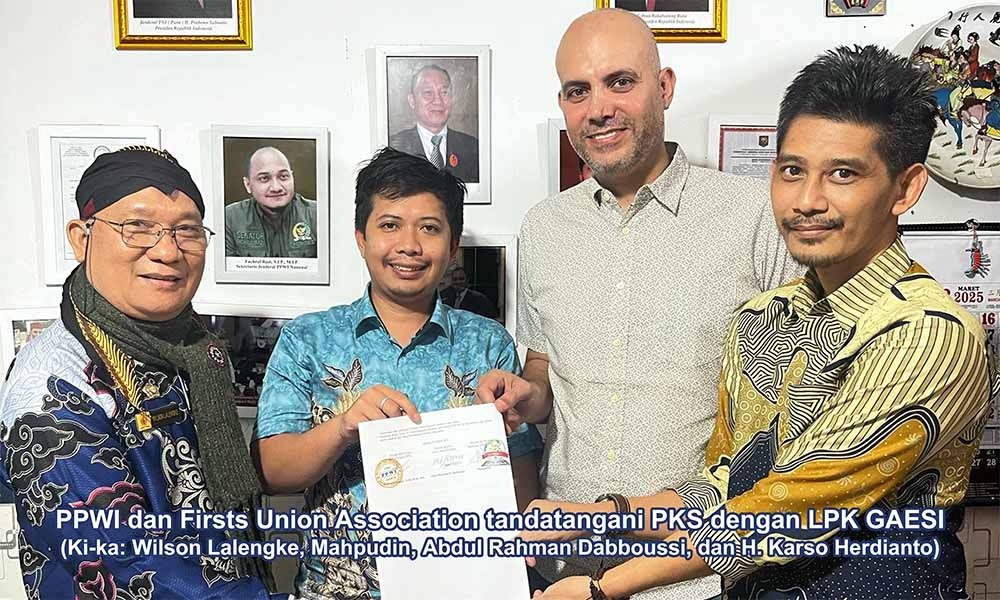 Siberpatroli.co.id // Jakarta – Sebagai tindak lanjut dari rencana kerja sama organisasi Persatuan Pewarta Warga Indonesia (PPWI) bersama mitra konsorsiumnya, Firsts Union Association, dengan Lembaga Pelatihan Kerja Galuh Essa International (LPK GAESI), ketiga pihak sepakat menandatangani Perjanjian Kerja Sama (PKS). Hal ini disampaikan Ketum PPWI, Wilson Lalengke, kepada media ini pada Senin, 10 Maret 2025.