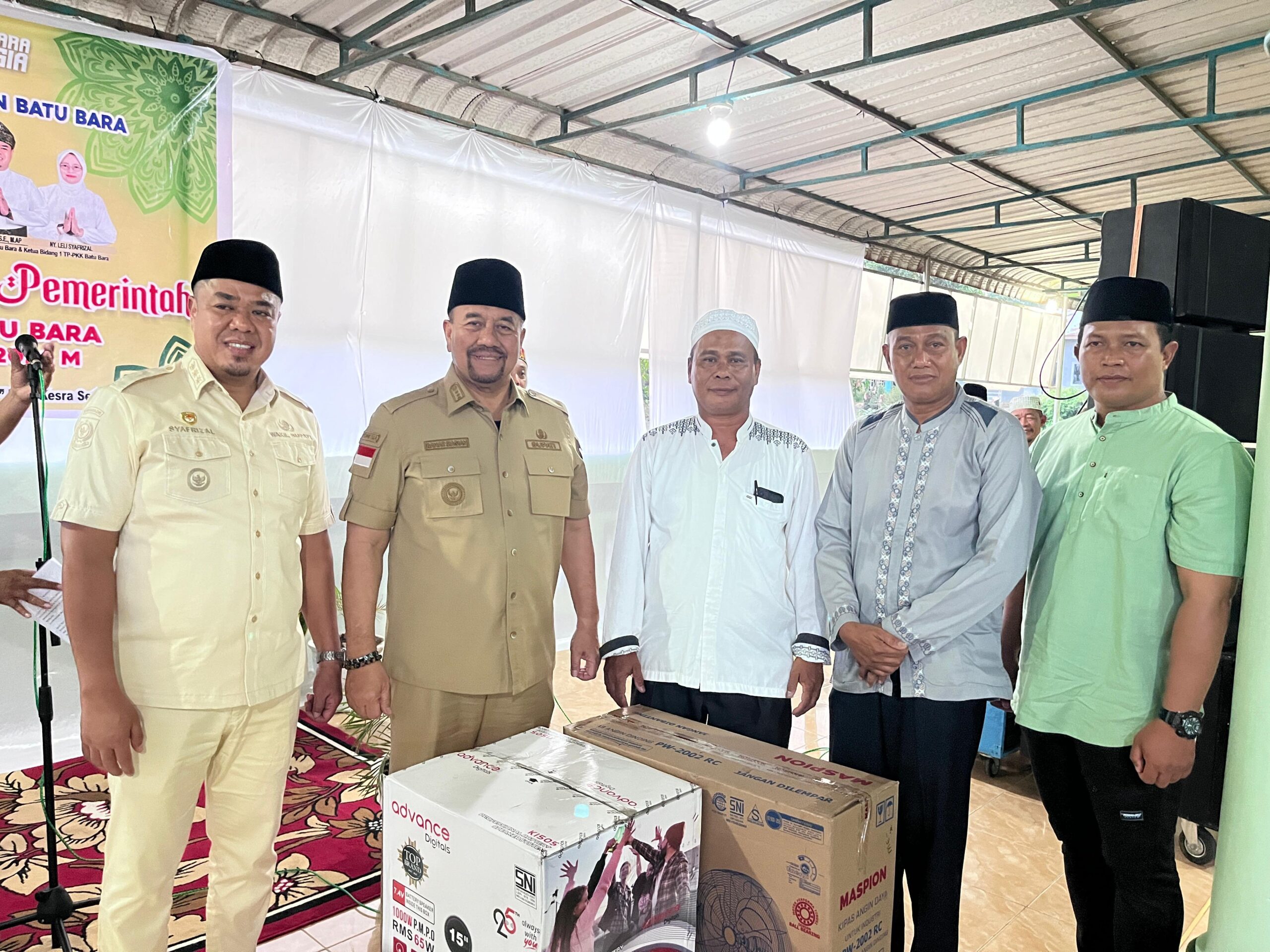 Pada kesempatan tersebut, Bupati Batu Bara menyerahkan bantuan kepada pengurus Masjid Al-Ashari berupa satu unit speaker aktif dan kipas angin guna mendukung kenyamanan dan kelancaran pelaksanaan ibadah.