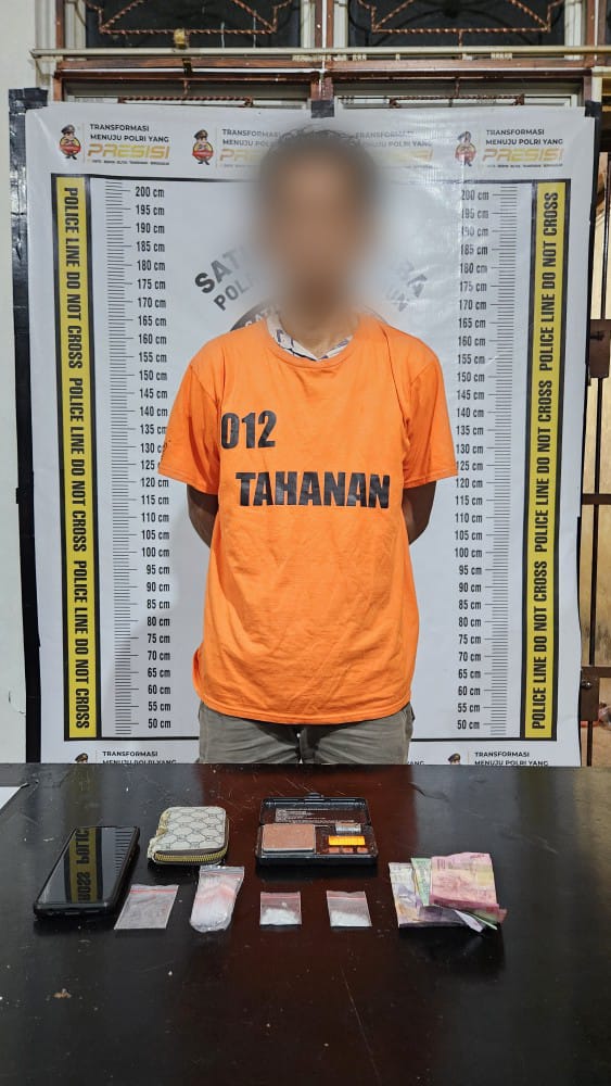 Selain narkoba, petugas juga mengamankan barang bukti pendukung berupa satu unit HP Android merk Vivo, satu unit timbangan digital, uang tunai senilai Rp 240.000 yang diduga hasil penjualan narkoba, serta beberapa plastik klip kosong yang diduga akan digunakan untuk mengemas narkoba.