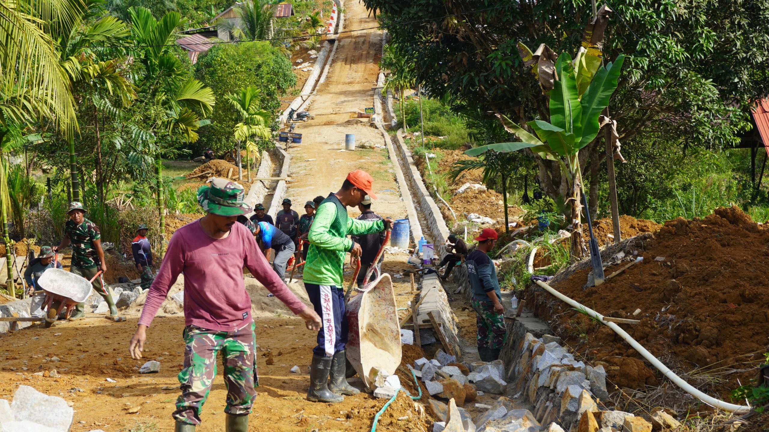 Kotawaringin Timur // Siberpatroli.co.id – TNI Manunggal Membangun Desa (TMMD) ke 127 Kodim 1015/Sampit terus genjot pembanggunan fisik dan non fisik mencapai target mengingat sisa waktu tinggal sebelas hari terus di lakukan oleh personil TNI bersama warga.