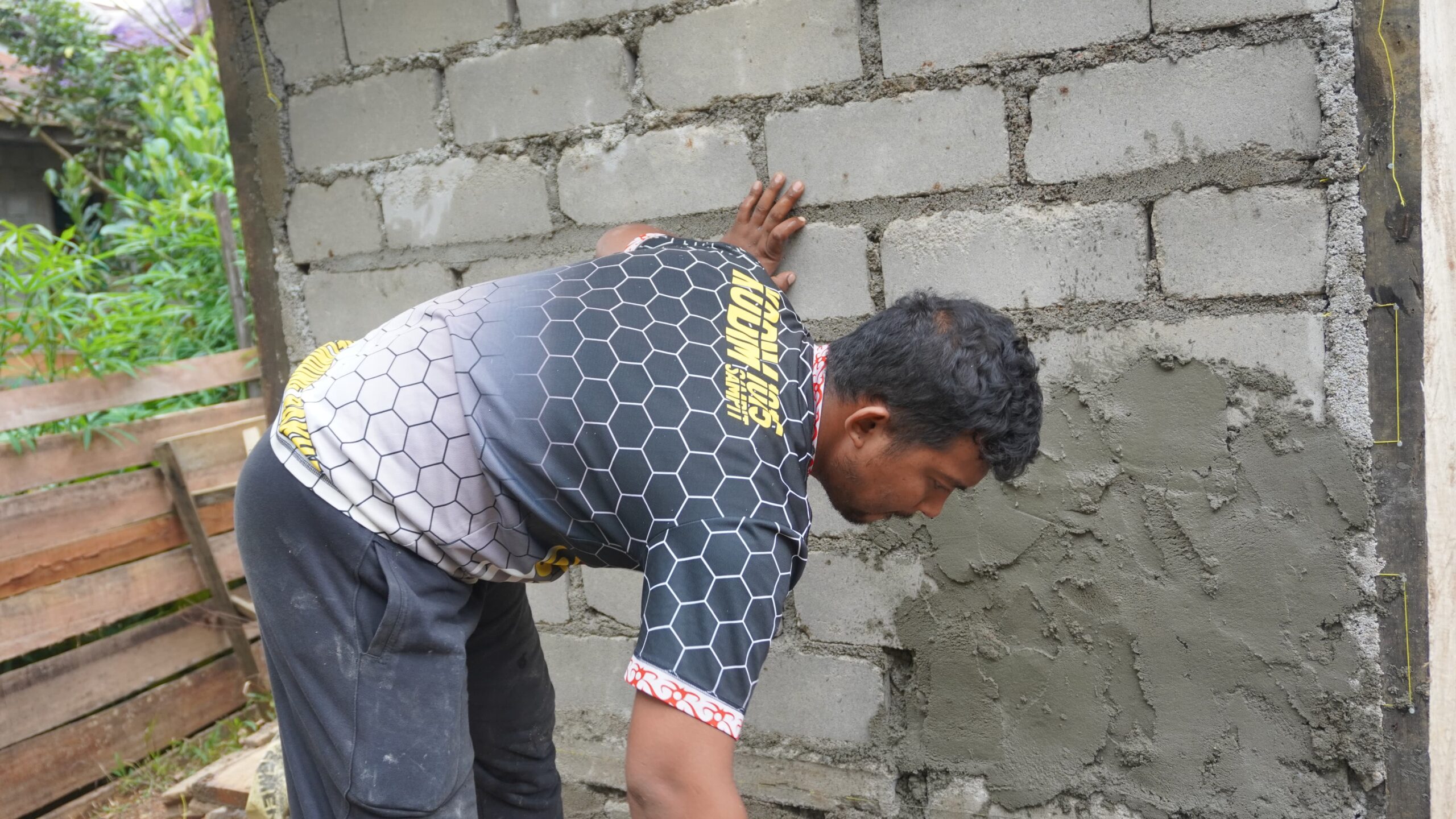 Personel Satgas TMMD bersama masyarakat setempat melanjutkan pengerjaan fisik berupa plesteran dinding pada fasilitas Mandi, Cuci, Kakus (MCK) sasaran dua. Pengerjaan ini merupakan bagian dari upaya TMMD untuk meningkatkan kualitas infrastruktur dasar dan kesehatan masyarakat di Desa Tri Buana Kecamatan Telaga Antang Kabupaten Kotawaringin Timur.