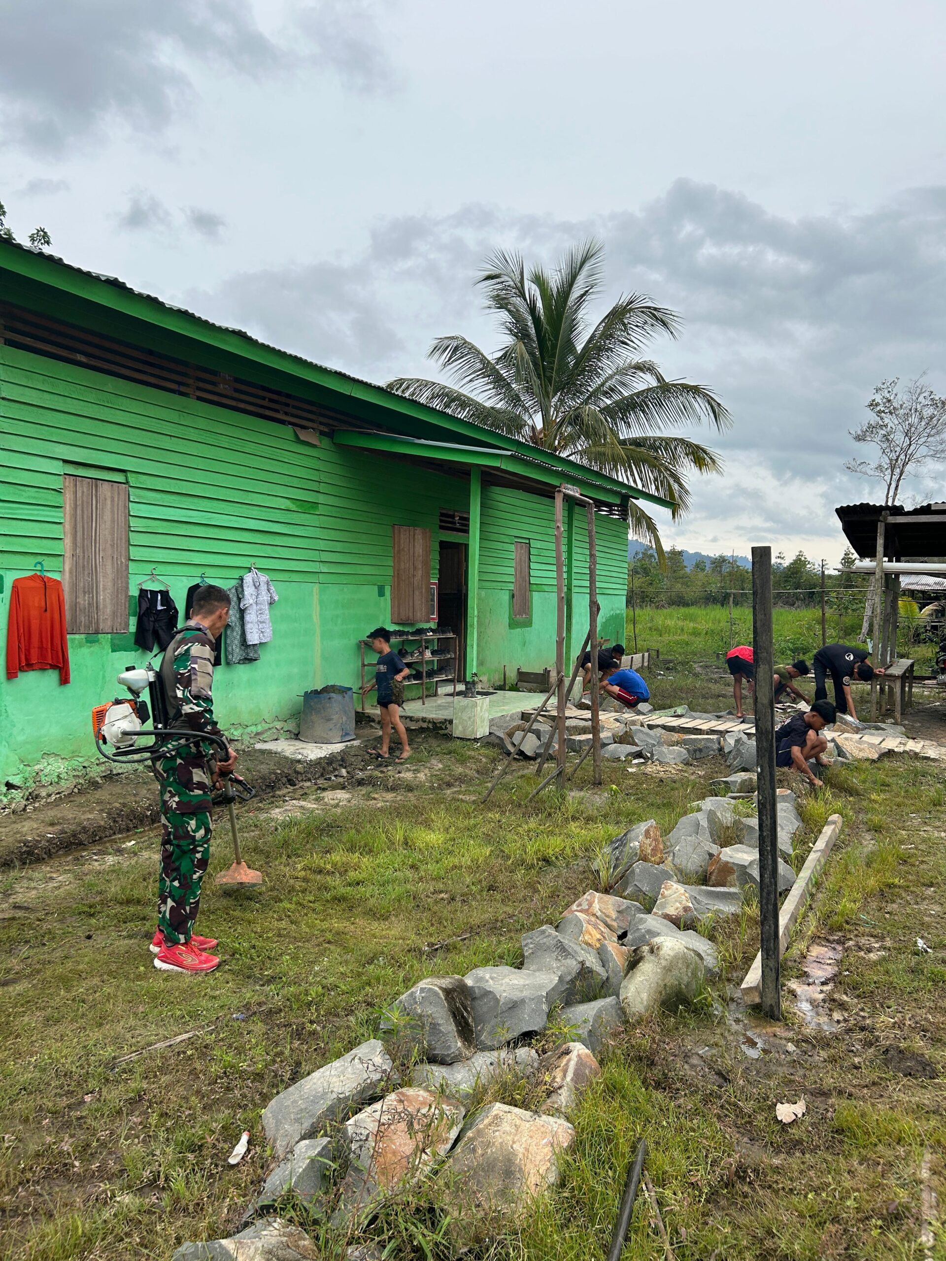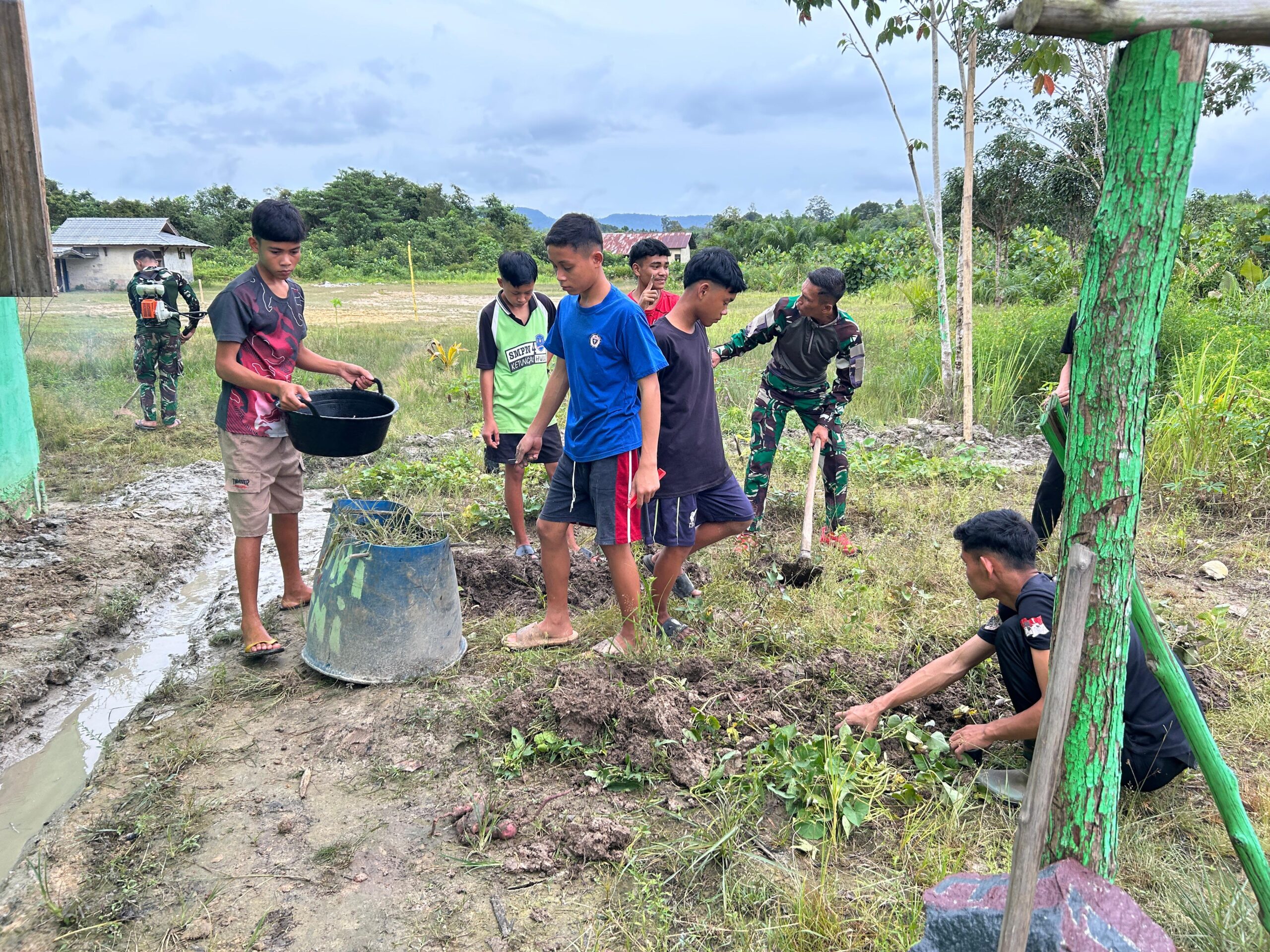 Siberpatroli.co.id // SINTANG – Dalam upaya meningkatkan ketahanan pangan dan kebersihan lingkungan, Pos Nanga Bayan mengajak para siswa SMPN 4 Nanga Bayan melaksanakan giat berkebun dan pembersihan lingkungan sekitar sekolah. Kegiatan ini diikuti oleh siswa SMPN 4 dan anggota Satgas Pamtas di Desa Nanga Bayan, Kecamatan Nanga Bayan, Kabupaten Sintang, Rabu (26/2/2025).