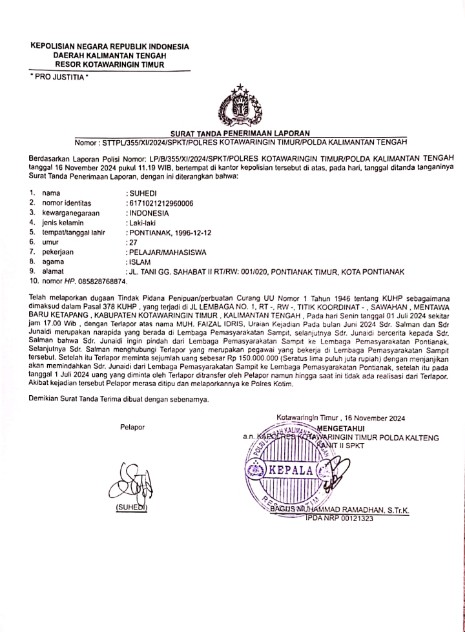 Di sisi lain, ia mengungkap bahwa pria yang membuat video tersebut justru dilaporkan oleh warga binaan dan keluarga atas dugaan penipuan ke Polres Kotim. Laporan ini dilakukan beberapa hari sebelum video tersebut beredar.
