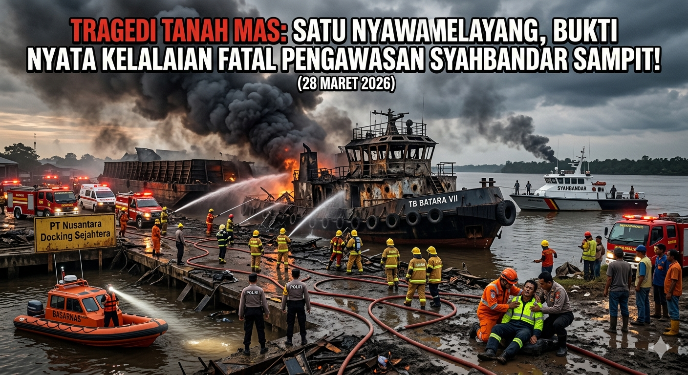 Insiden kebakaran tugboat yang memakan tiga korban—satu tewas, satu luka berat di kepala, dan satu hilang—bukan sekadar “kecelakaan kerja”, melainkan manifestasi kegagalan fatal Kantor Kesyahbandaran dan Otoritas Pelabuhan (KSOP) Sampit dalam menjalankan fungsi pengawasan.
