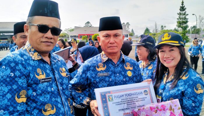 Selain itu, dalam kesempatan ini juga di berikan piagam penghargaan Predikat kepatuhan Standar Pelayanan Publik di Lingkungan Pemkab Simalungun hasil penilaian penyelenggaraan pelayanan publik Kabupaten Simalungun Tahun 2024 kepada sejumlah Perangkat Daerah di lingkungan Pemkab Simalungun.