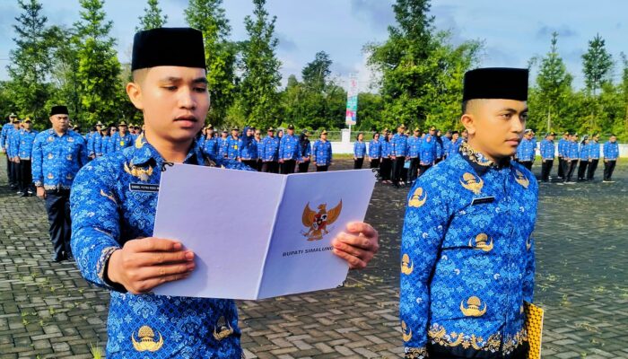 Sebagai pemimpin upacara Kadis Kominfo Simalungun Andri Rahadian, dan perwira upacara Kepala Badan Kepegawaian dan Sumber Daya Manusia (BKPSDM) Jonni Saragih.