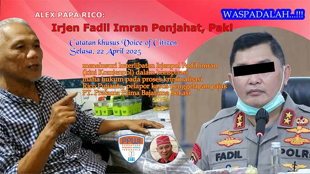 Siberpatroli.co.id // Jakarta – Sebuah video berdurasi 20 menit yang diunggah ke YouTube dengan judul bombastis “Heb0h..!!! F4dil Imran P3njah4t…???” sontak menyita perhatian warganet. Dalam tayangan tersebut, seorang pria bernama Alex Papa Rico—yang mengaku sebagai ayah kandung dari Rico Pujianto—melontarkan tuduhan serius terhadap Irjen Fadil Imran, perwira tinggi Polri yang kini menjabat sebagai Kepala Badan Pemelihara Keamanan (Kabaharkam) Polri.