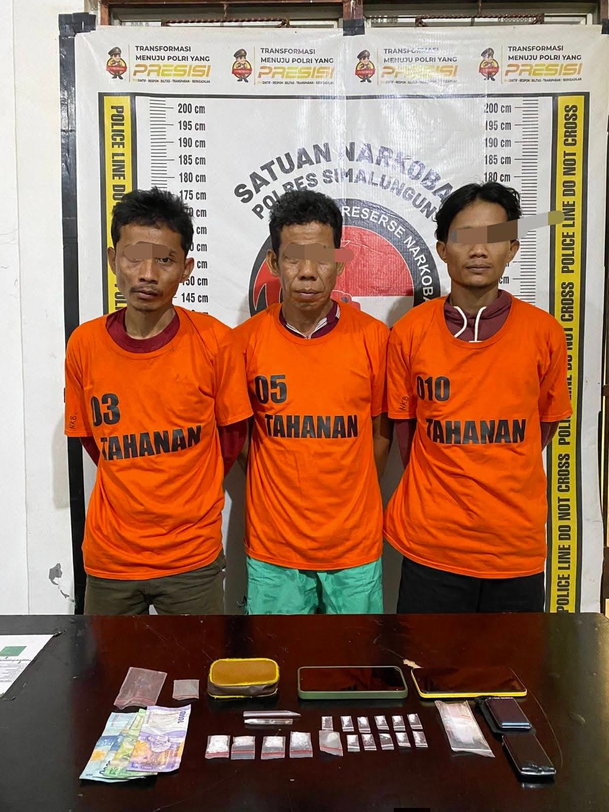 “Operasi penangkapan para tersangka pesta sabu ini dilakukan pada hari Rabu, 1 Oktober 2025, sekitar pukul 10.00 WIB. Lokasi penangkapan berada di rumah milik SYAHRIZAL di Huta III Bandar Sakti Nagori Bandar Tinggi Kecamatan Bandar Masilam Kabupaten Simalungun. Ketiga tersangka berhasil kami gulang saat sedang asyik mengonsumsi sabu,” ungkap Kasat Narkoba Polres Simalungun.
