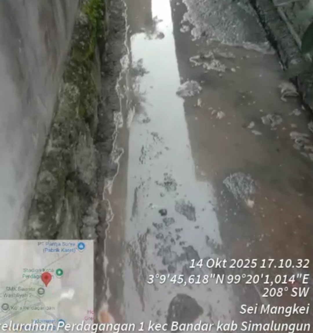 Siberpatroli.co.id || SIMALUNGUN – Warga Kelurahan Perdagangan I, Kecamatan Bandar Kabupaten Simalungun, mengeluhkan adanya limbah cair yang diduga berasal dari kegiatan pengelolaan program nasional Makan Bergizi Gratis (MBG). Limbah berwarna kehitaman dengan aroma menyengat itu dilaporkan mengalir ke saluran drainase hingga ke pemukiman warga di Jalan Pegadaian dan Jalan Stadion, menimbulkan keresahan di tengah masyarakat.